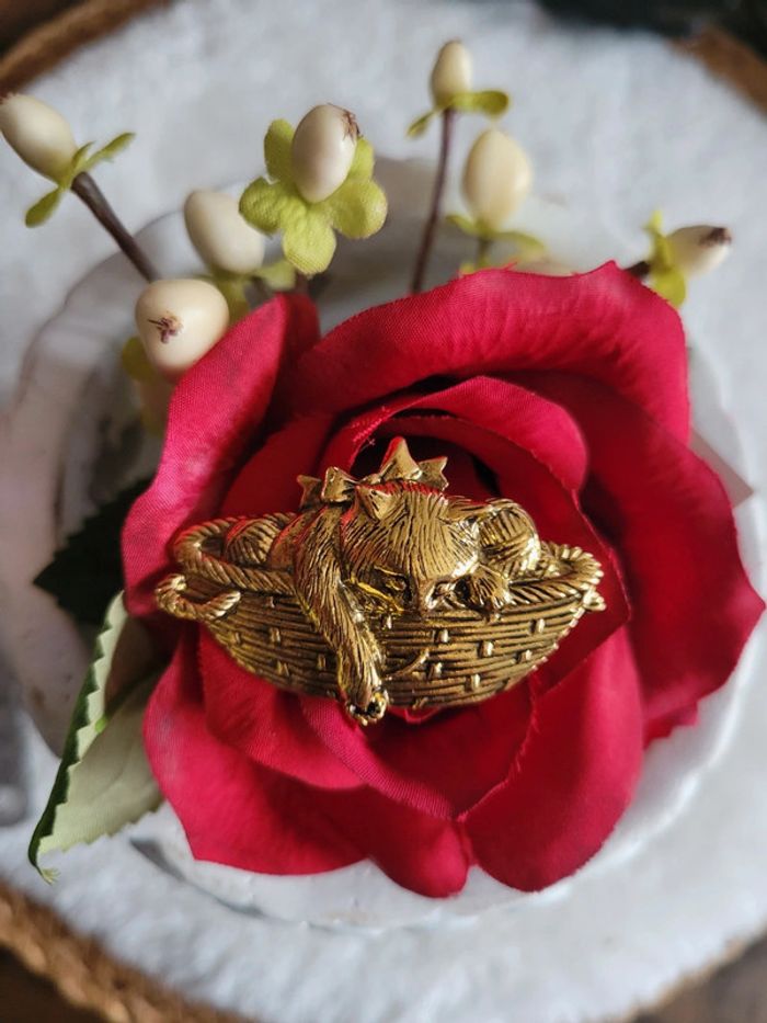 Broche chat 🐱 dormeur dans son panier - photo numéro 1