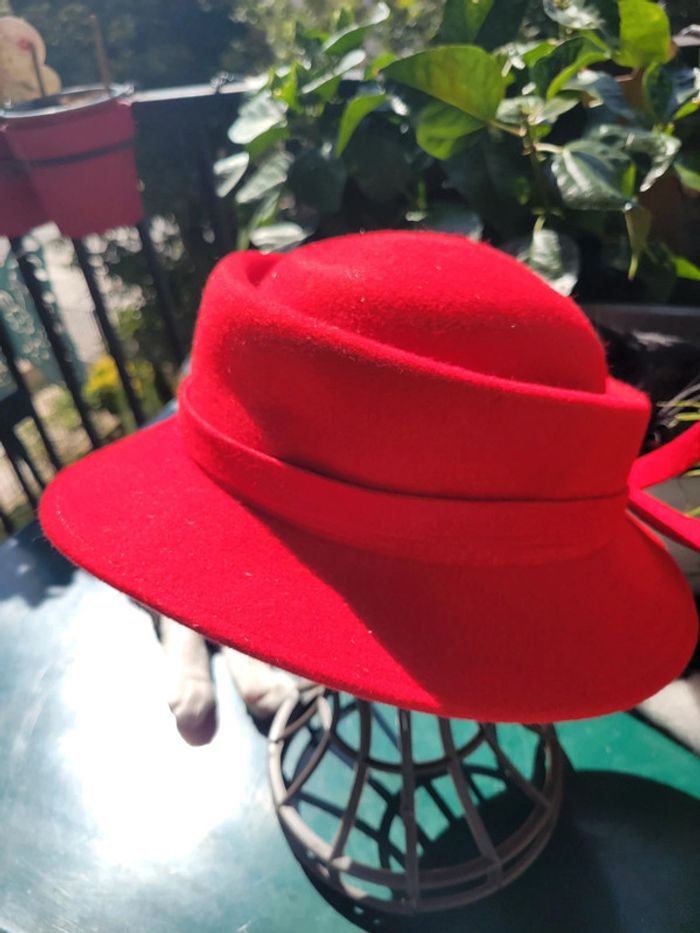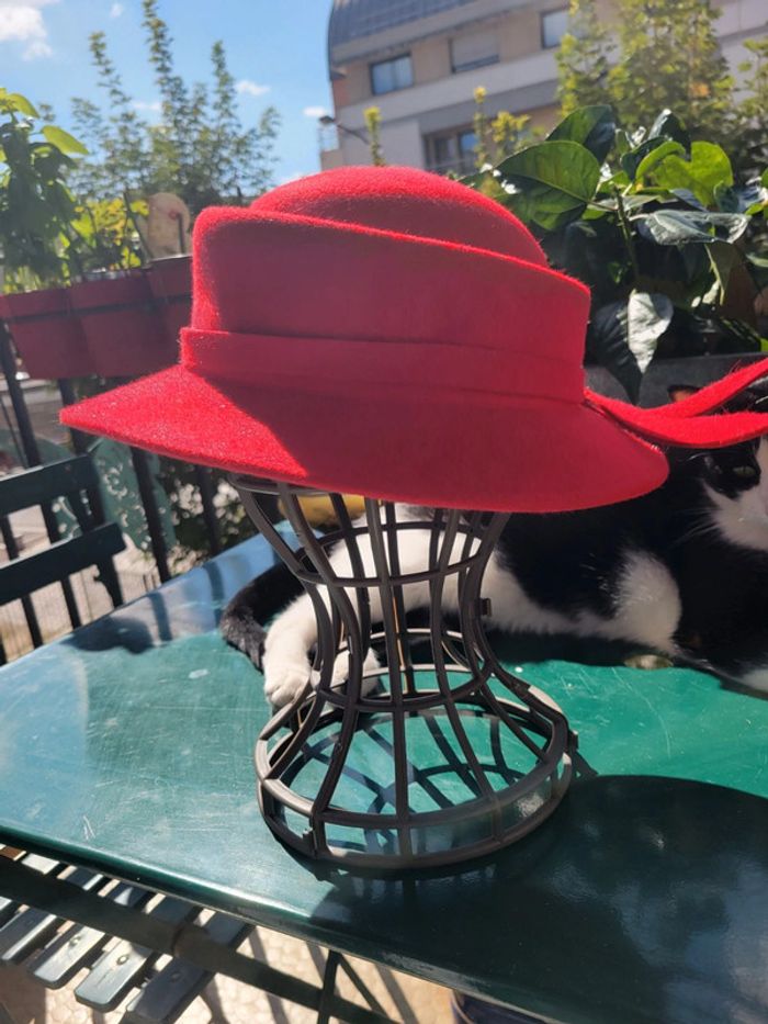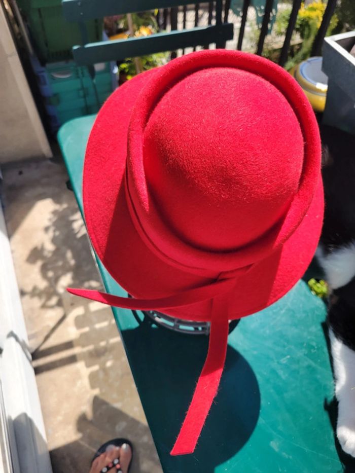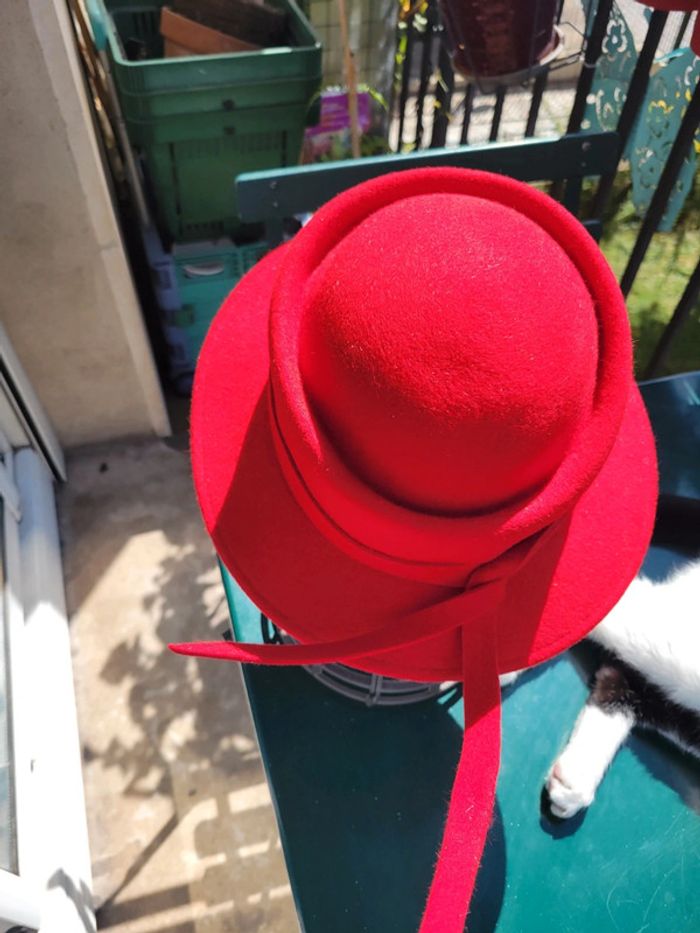 Chapeau porté 1 fois (pour 1 mariage) Rouge. Feutre T54 Envoi sous 24h_48h