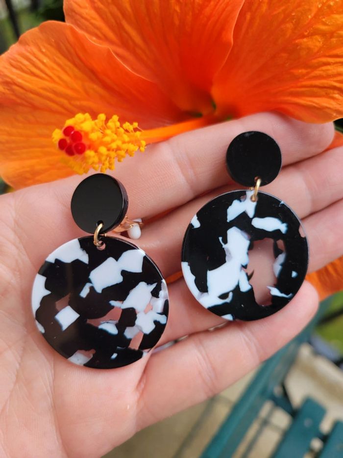 Clips acrylique noir, blanc, transparent.. Attache en acier inoxydable. Hypoallergeniques. Neufs ⚠️⚠️⚠️Lot possible avec plusieurs articles sur demande..screenshorts des articles souhaités et je vous composerai un lot au nom de votre pseudo...👍 Envoi sous 24h_48h Envoi sous 24h / 48h.