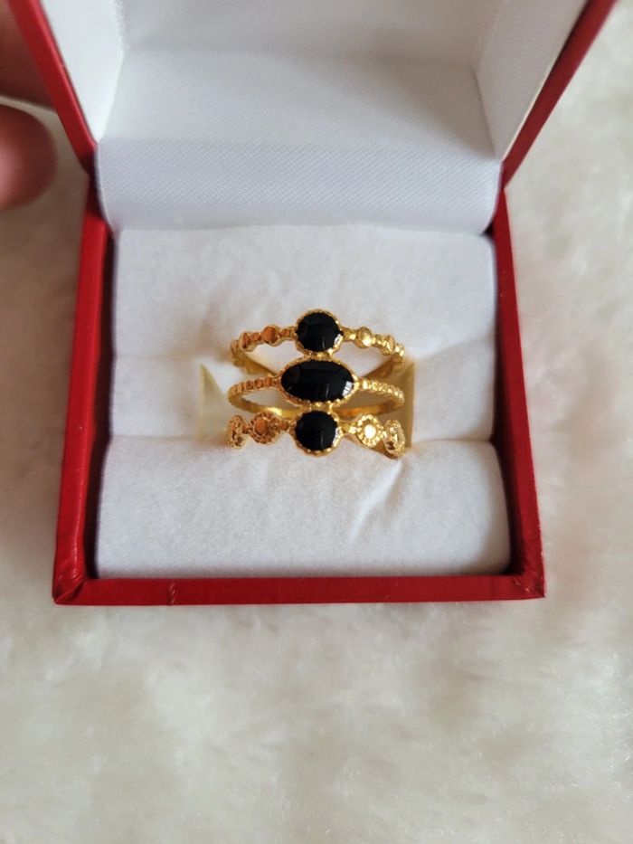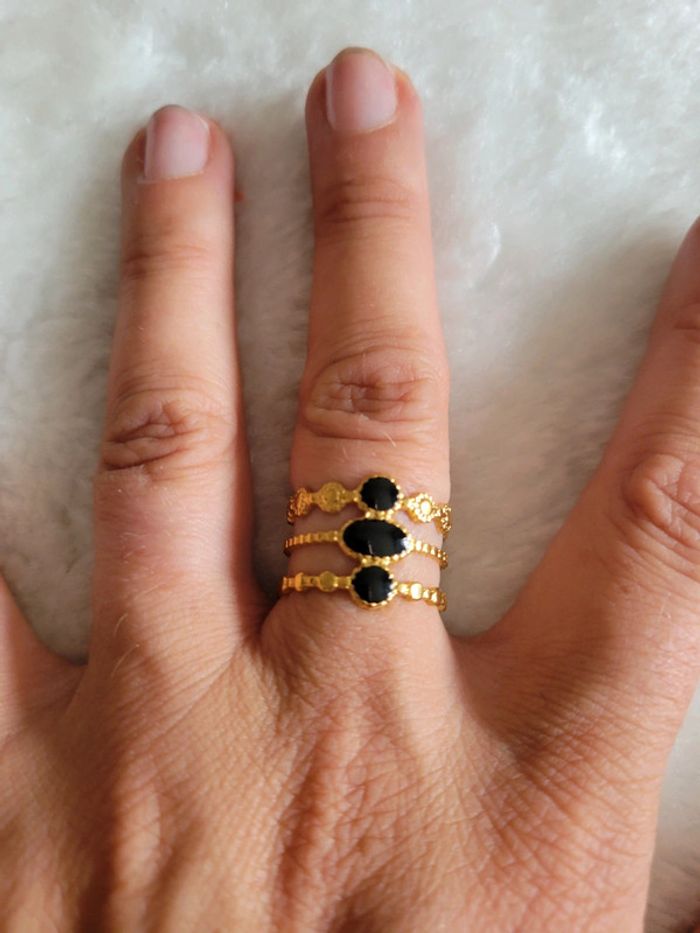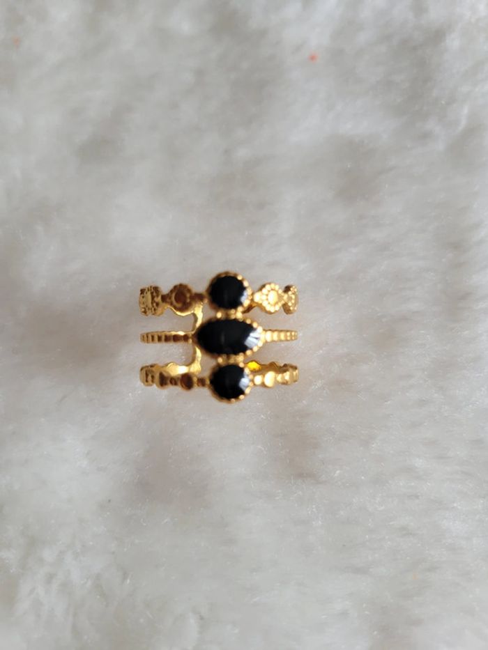 Bague 3 rangs acier inoxydable pierre noir - photo numéro 1