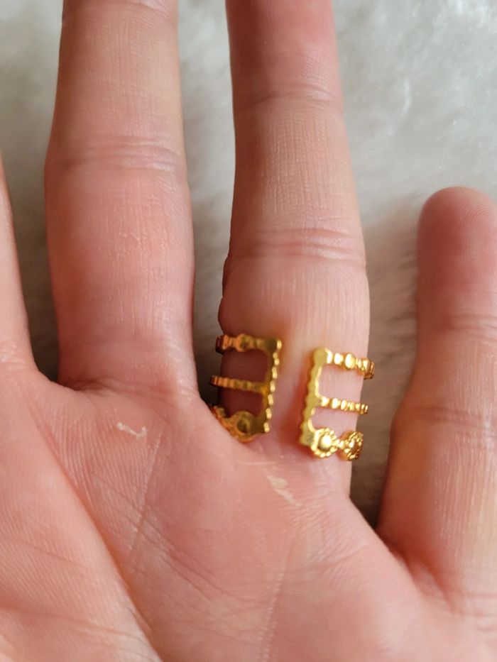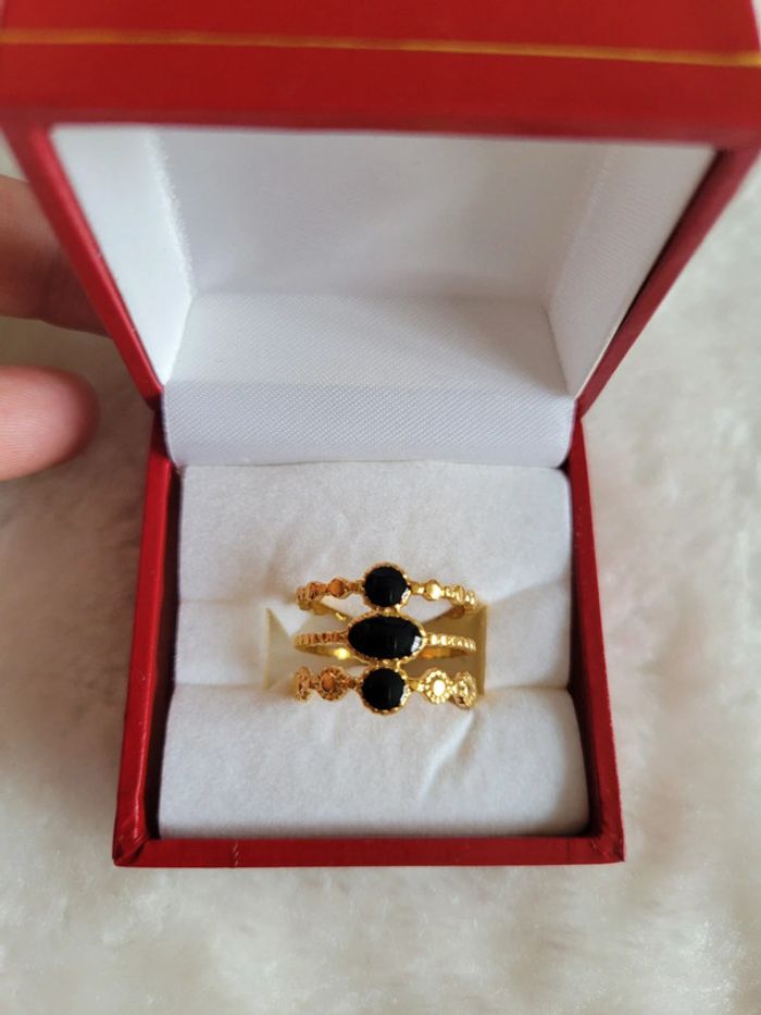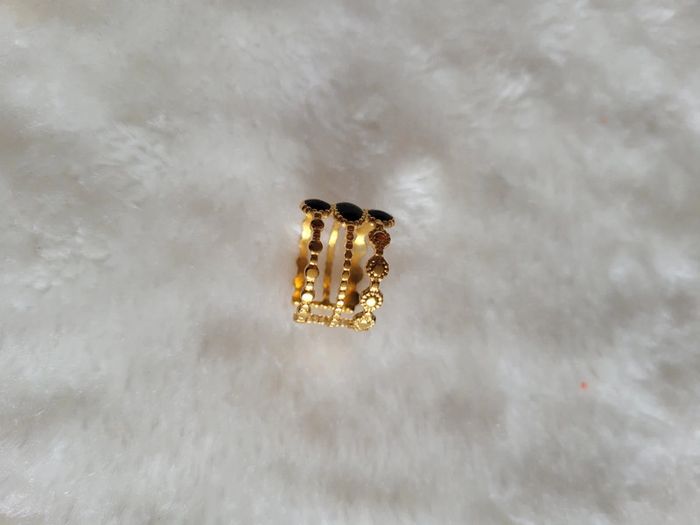 Bague 💍acier inoxydable gold. Email noir ⚫️ Ajustable Hyppoallergenique Neuve Lot possible avec différents articles de mon dressing, sur demande. Je vous préparerai une annonce personnalisée au nom de votre pseudo...🥰👌🙂 Pochette 🎁 sur demande Envoi sous 24h_48h
