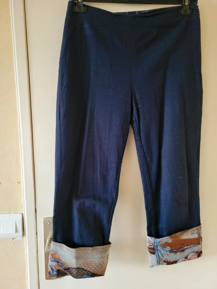 Corsaire jean bleu marine. Taille M. Coton et elasthane. Peu porté. Va vient àun 38/40. Lavable en machine. Fermeture latérale sir le côté pour permettre de " l enfiler" sans soucis. P. BREAL Envoi sous 24h_48h