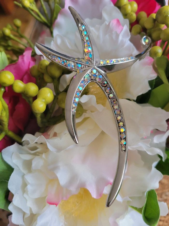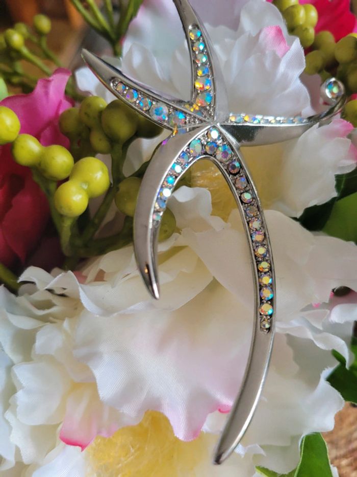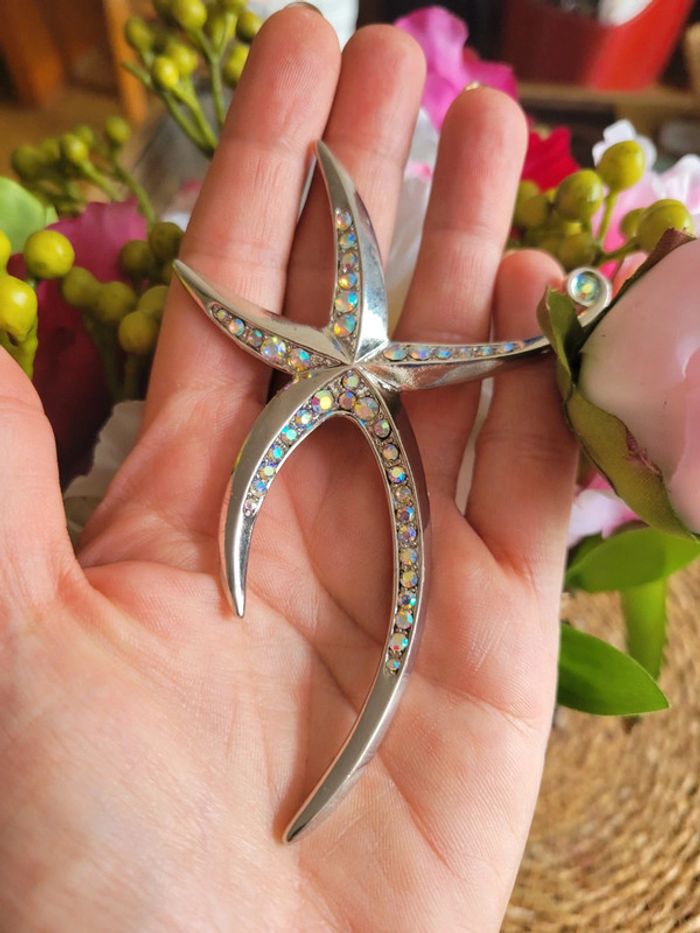 Broche étoile de mer. Acier inoxydable silver et zirconiums multicolores Originale Neuve Differents modèles dans mon dressing.... Lot possible avec différents articles En voi sous 24h_48h.