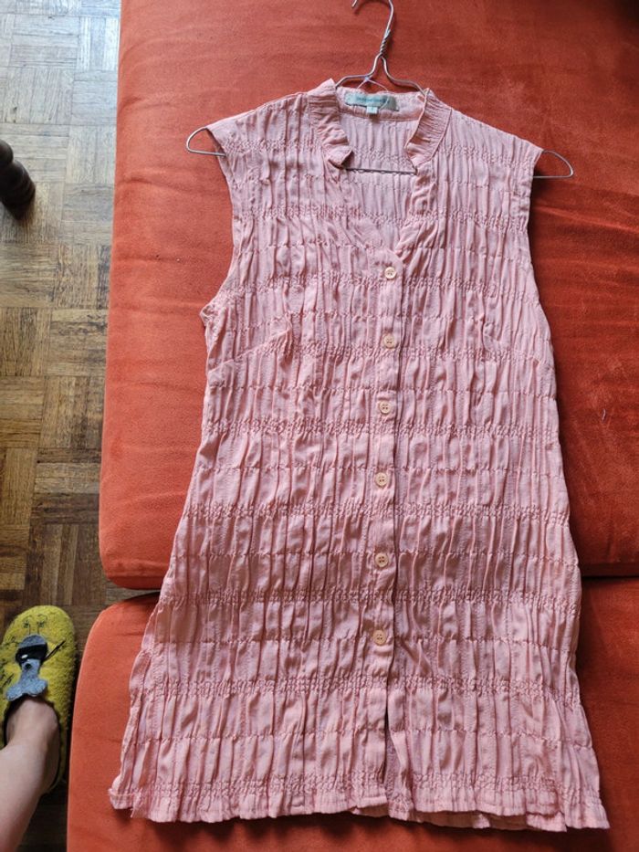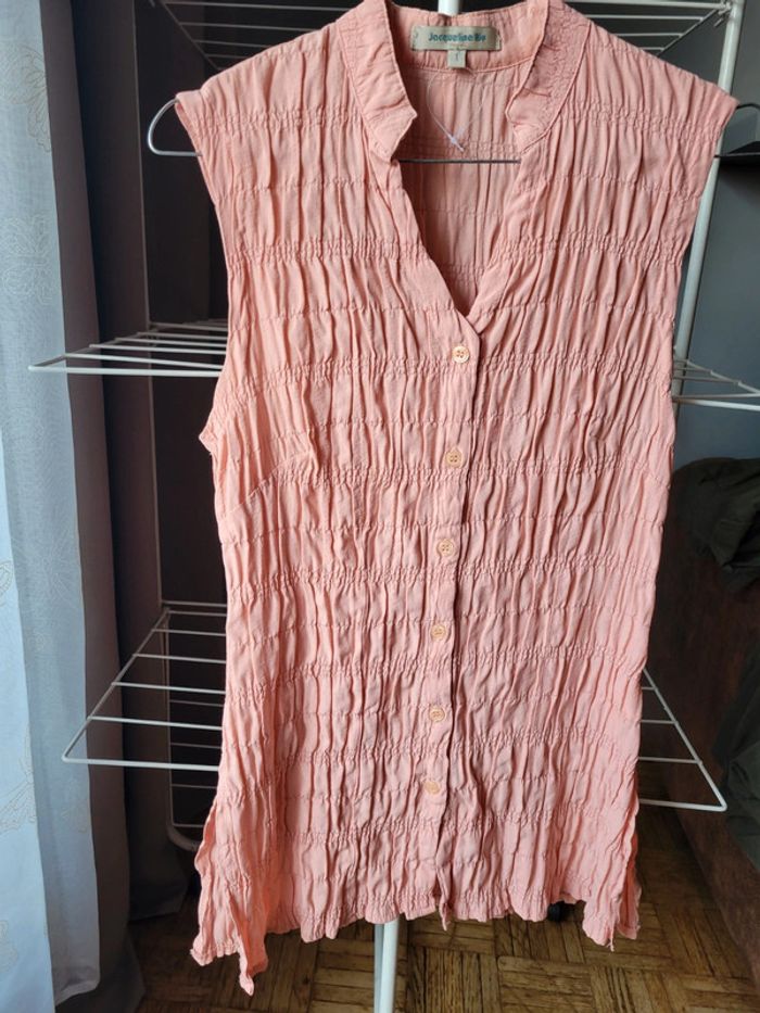 Chemise, tunique, sans manches Vieux rose. T1. Jacqueline RIU. Parfait état, 1 bouton supp sur etiquette. Pas de défaut. Ajustable. Cintrée. Convient très bien à un 36/38. Envoi sous 24h_48h