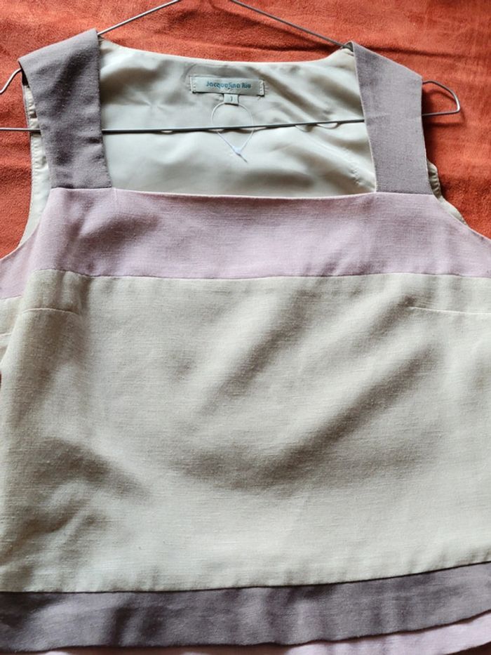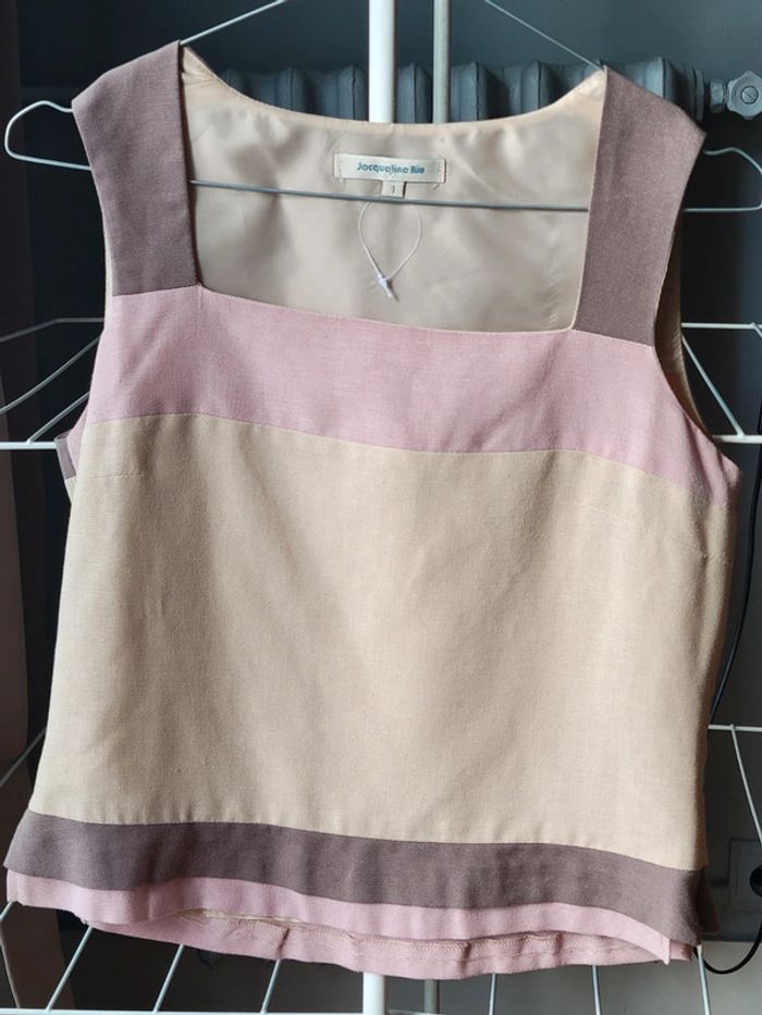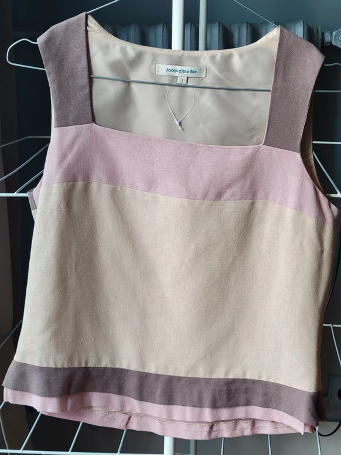 Très joli haut bretelle. Fermeture éclair sur le côté. Ton rose pâle, beige. Made in France. Envoi sous 24h/48h