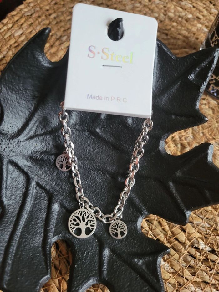 Gourmette trois arbres de vie acier - photo numéro 2