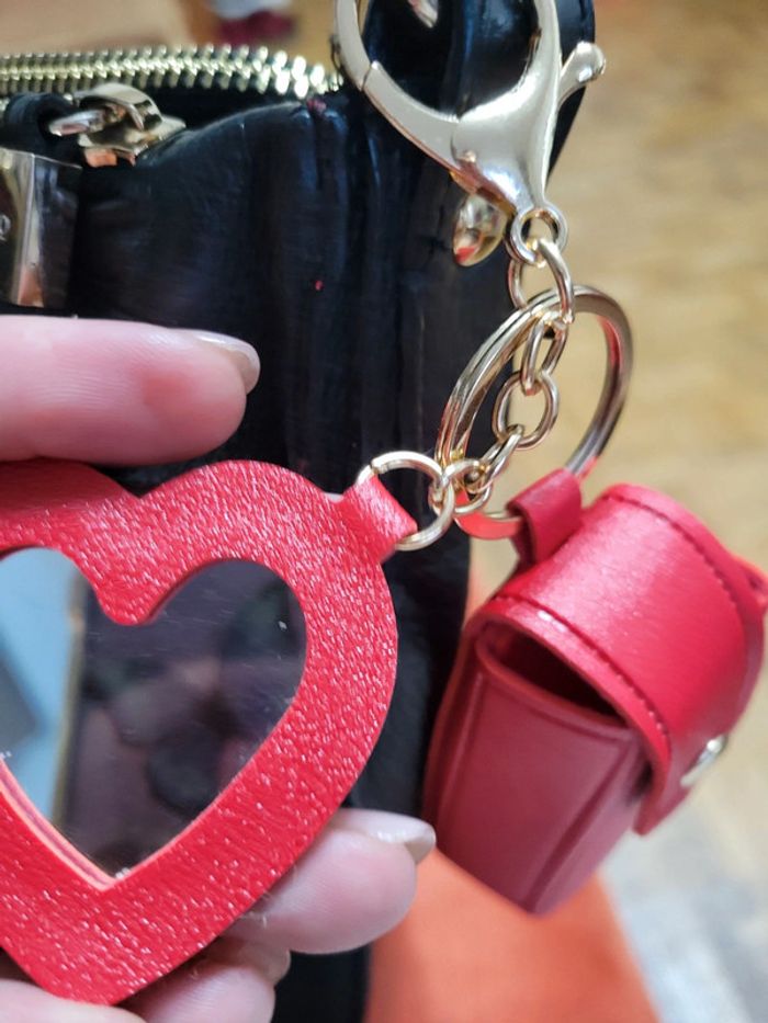 Porte clef 🔑 rouge à lèvres miroir cœur - photo numéro 2