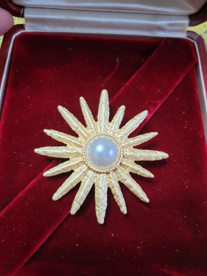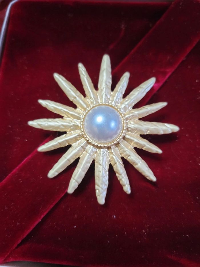 Broche soleil dore brossé et perle blanche - photo numéro 5