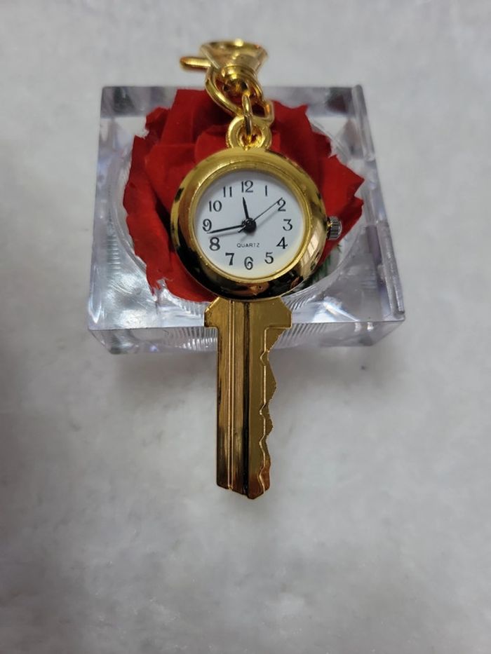 Cadeau 🎁 original..🙂 Jolie montre en forme de clef 🔑, Mousqueton...peut s accrocher à un sac à main, en pendentif..etc.. Montre et pile neuves.