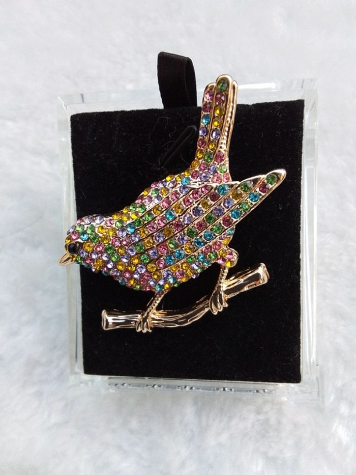 Jolie broche l'oiseau multicolore Strass multicolores Neuve, jamais portée. Originale 👍 Différents modèles dans mon dressing Envoi rapide et soigné. Pochette cadeau🎁 offerte sur demande