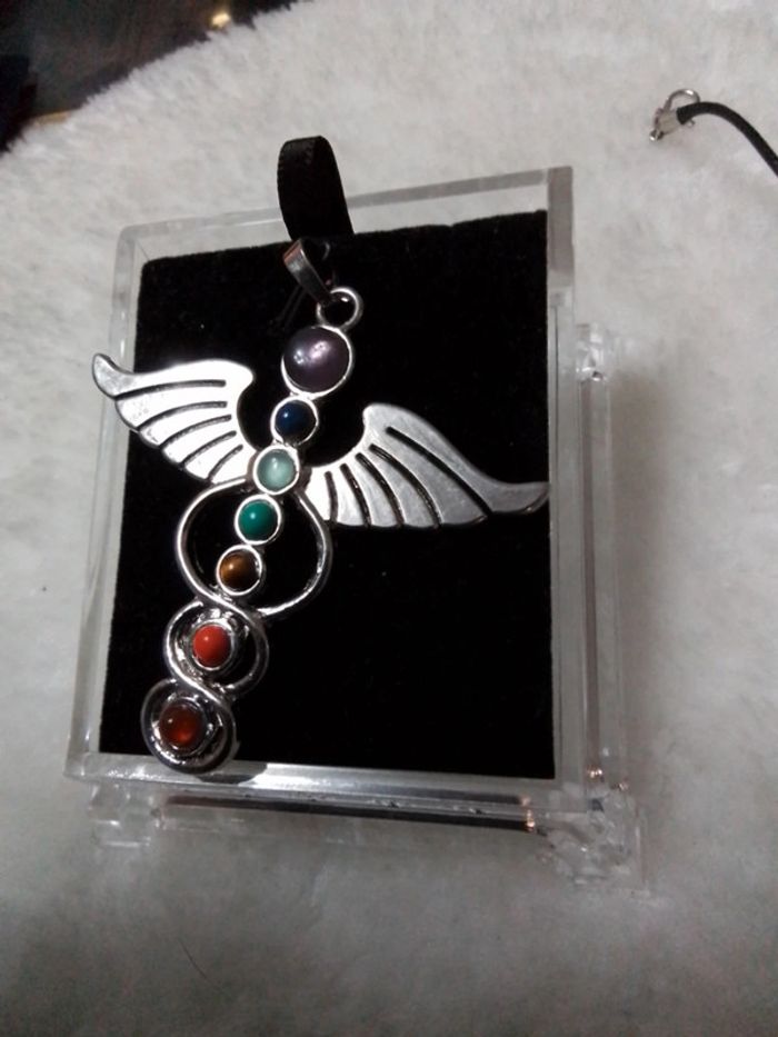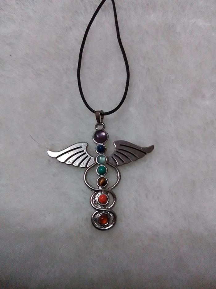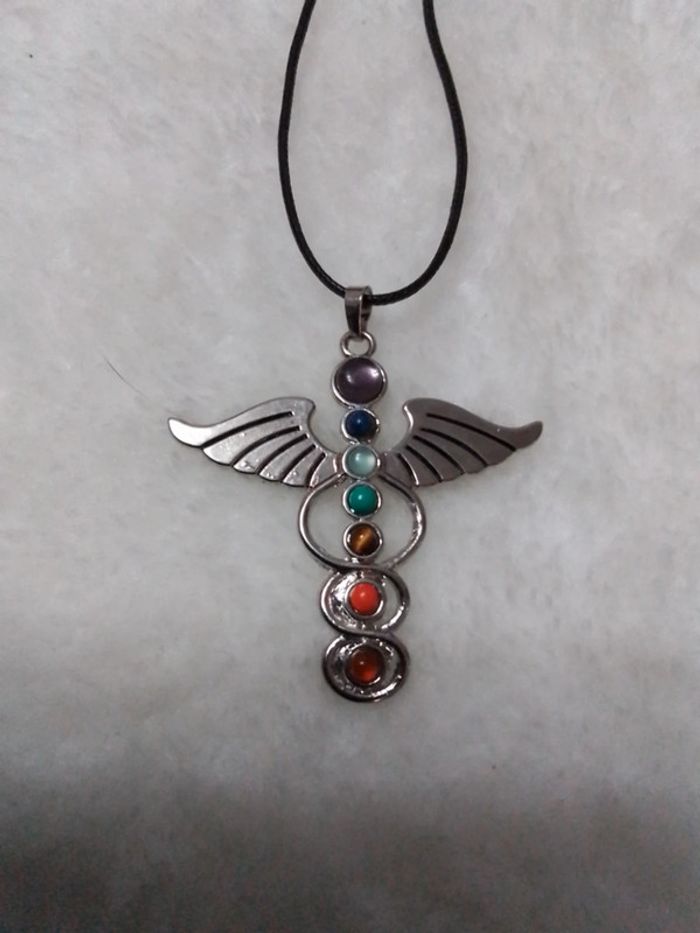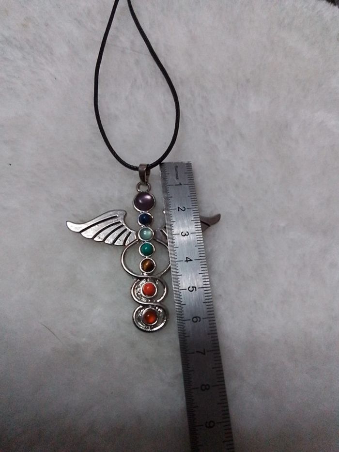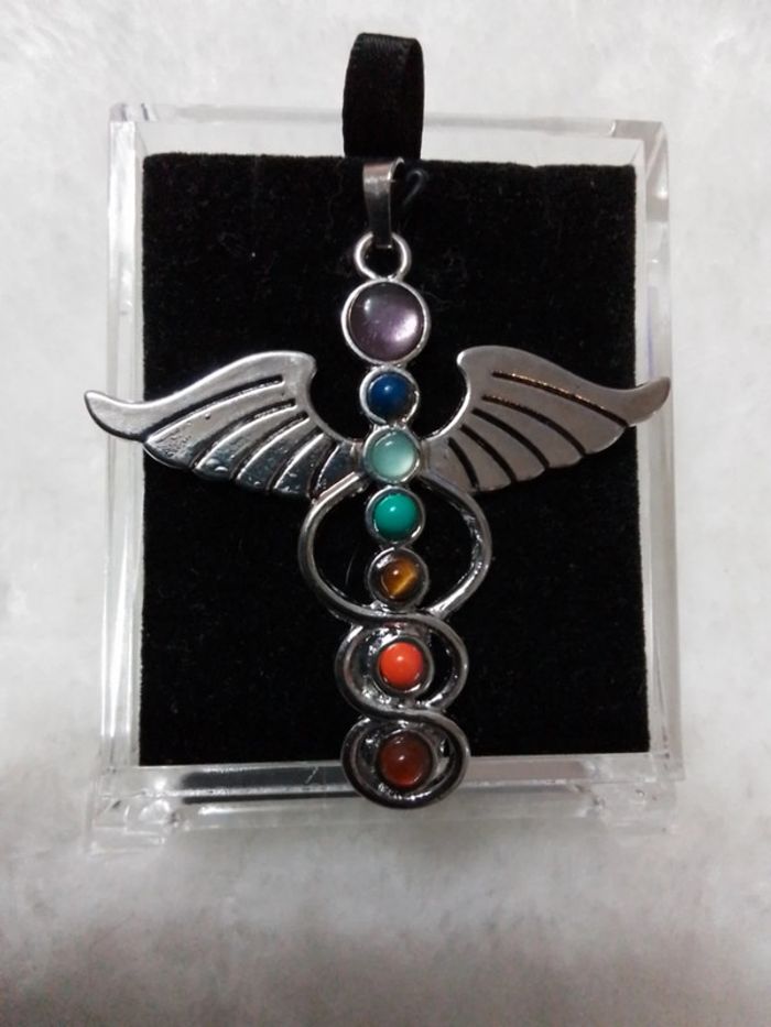 Magnifique pendentif énergétique 7 pierres naturelles pour représenter les chakras Livré avec un cordon noir. Neuf