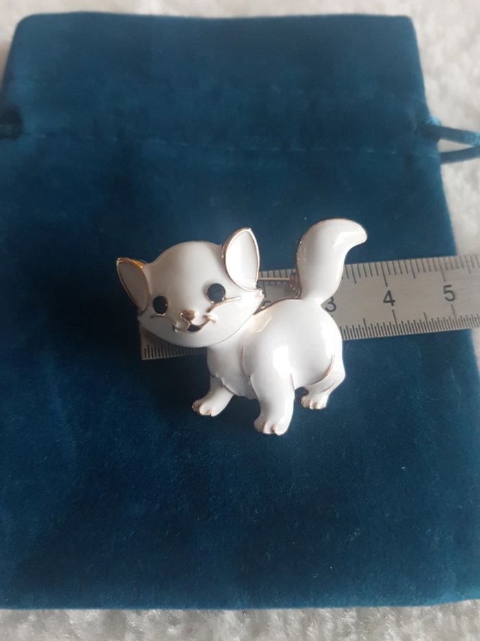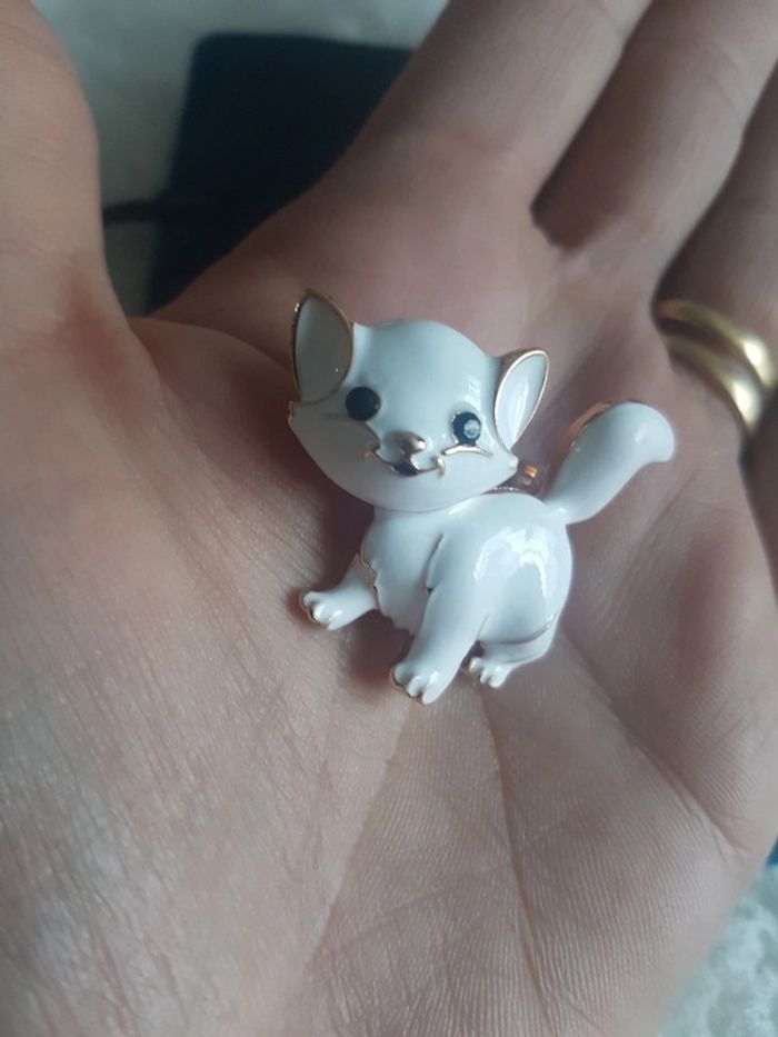 Très  jolie broche "le chaton blanc" Neuve, jamais portée. Dorée. Envoi rapide et soigné. Pochette 🎁cadeau offerte sur demande.