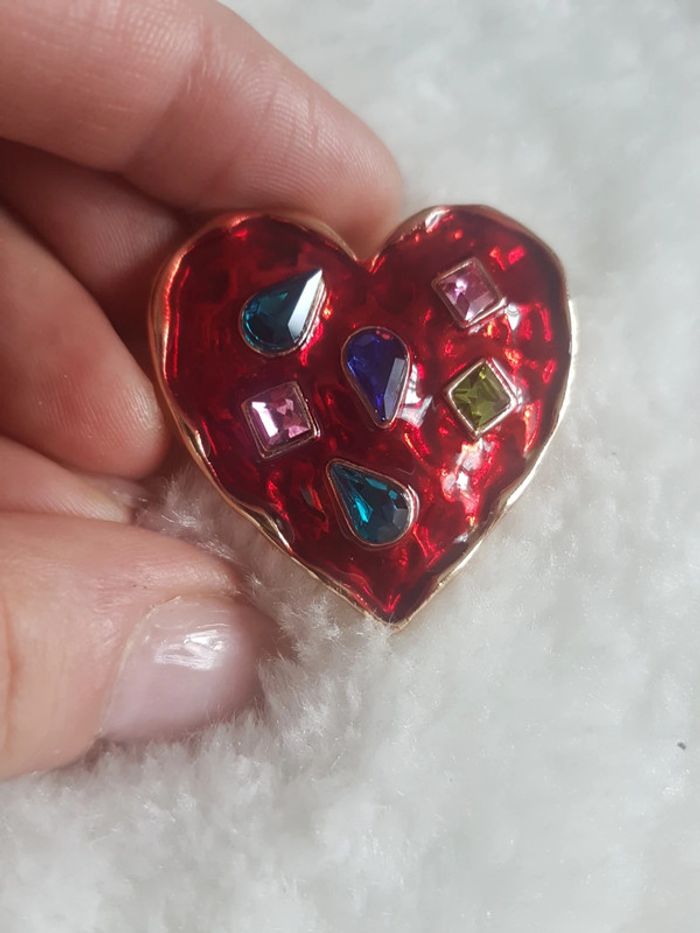 Jolie broche dorée, coeur rouge et pierres multicolores Neuve, jamais portée. Originale 👍 Différents modèles dans mon dressing Envoi rapide et soigné. Pochette cadeau🎁 offerte sur demande