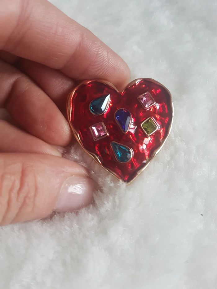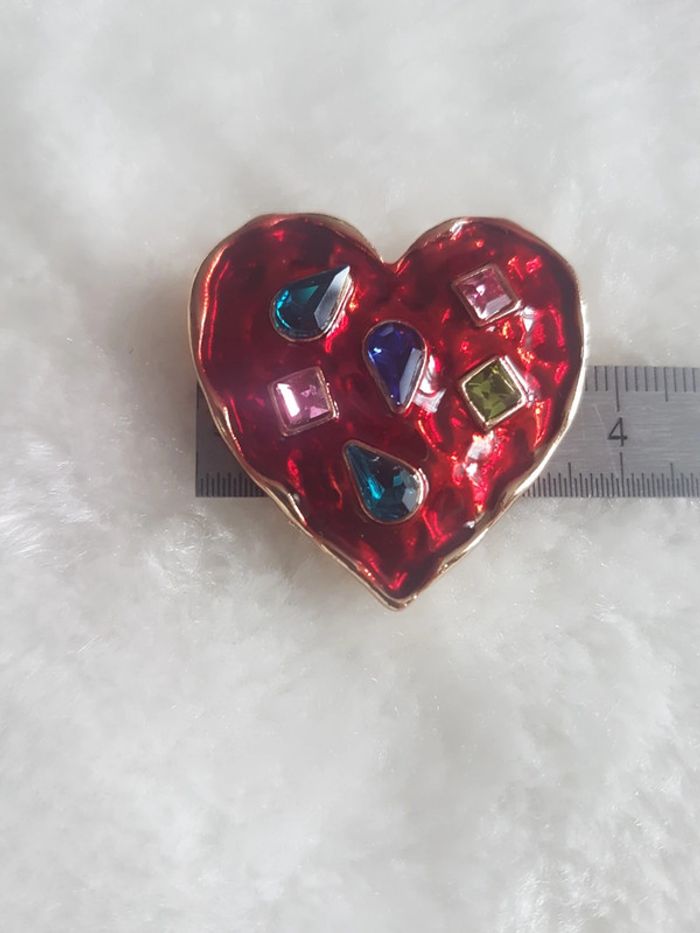Broche coeur 💕rougeet pierres de couleur - photo numéro 1