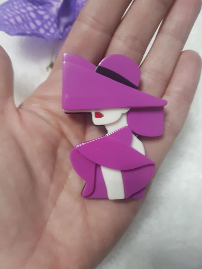 Broche la femme au grand chapeau fuschia - photo numéro 1