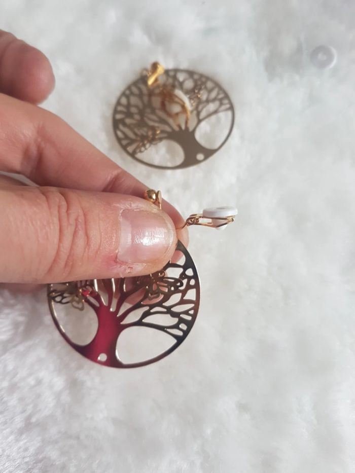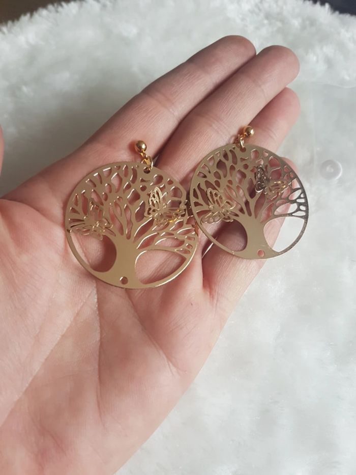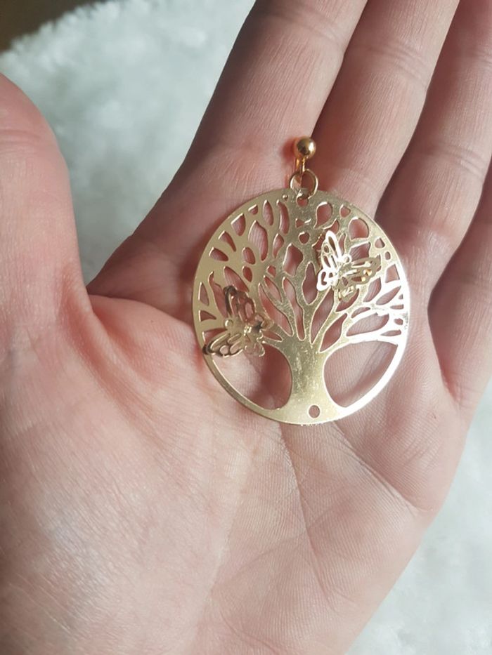Clips arbre de vie et papillons 🦋🦋 Oreilles non percées ou percées. Acier inoxydable doré Hypoallergénique Neuves, jamais portées. 2 poussoirs supp offerts Envoi rapide et soigné👍 Pochette cadeau offerte sur demande.