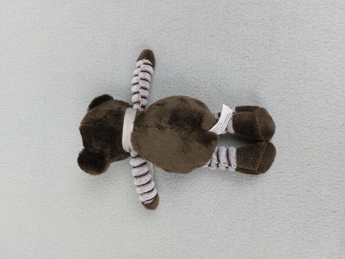 Petite peluche doudou ours RODA marron rayures gris chiné nœud beige 18 cm TBE - photo numéro 2