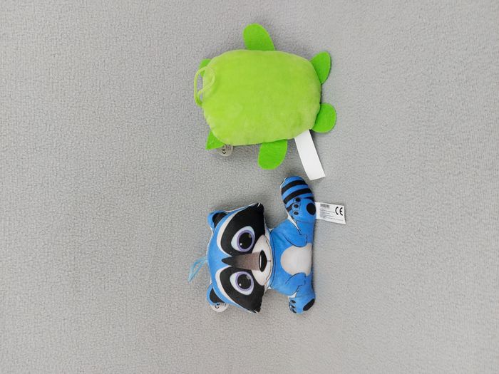 Lot de 2 petites peluches hibou 16 cm et raton laveur 13 cm à suspendre NEUF - photo numéro 2
