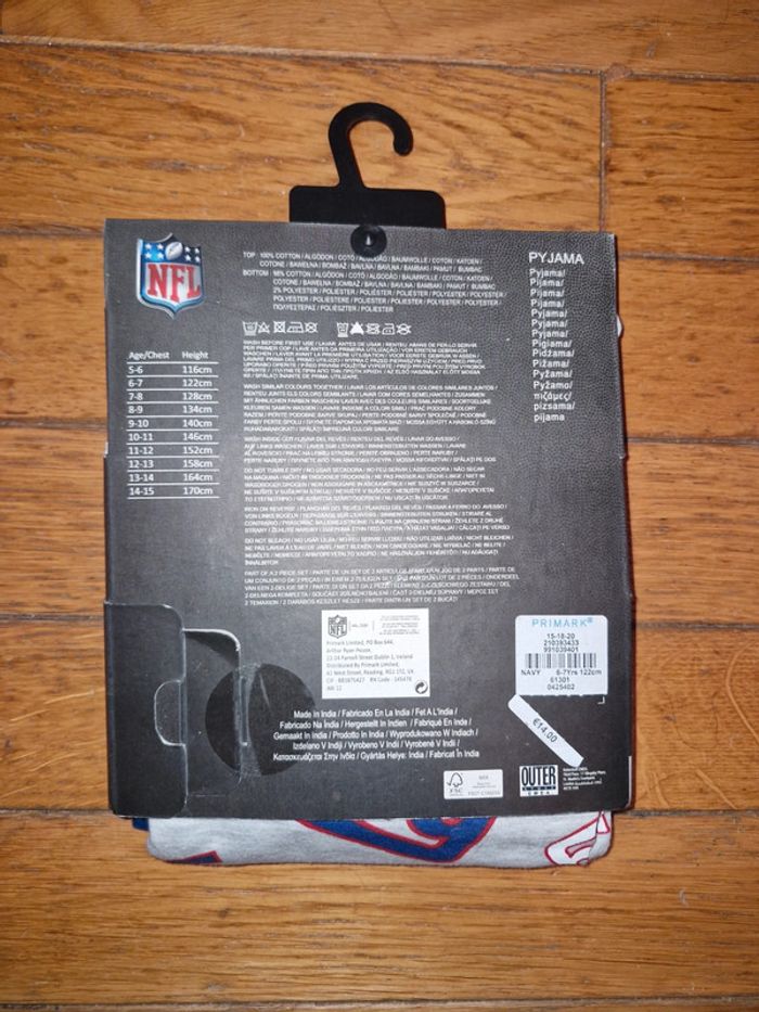 Pyjama long 2 pièces Neuf Taille 6/7 ans 122 cm Primark Thème NFL Il est écrit Giants devant sur le haut #Valandre7Ans #Valandre6Ans