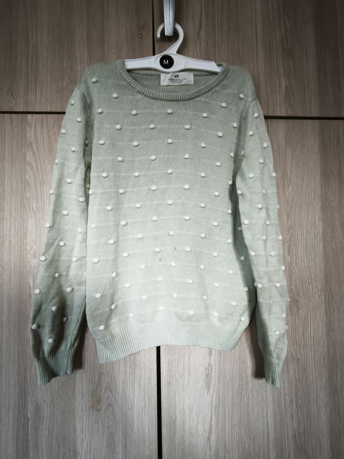 Pull pompon vert d'eau 7 a 8 ans H&M - photo numéro 1