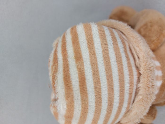 Peluche doudou ours marron bonnet rayé AFIBEL écharpe rayée beige écru billes - photo numéro 5