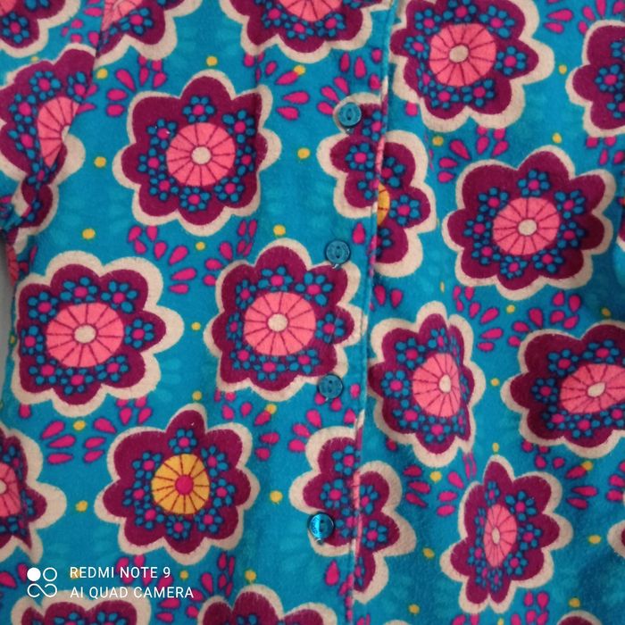 Fond bleu. Quelques bouloches. Coton. Bien chaud et doux. A boutons.