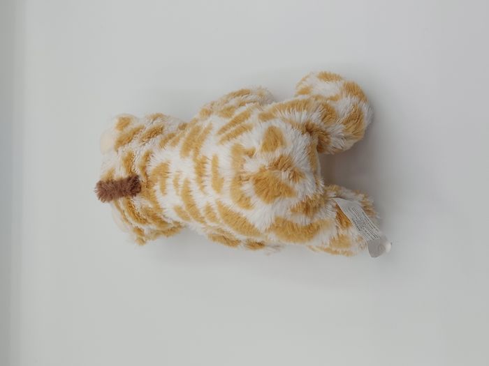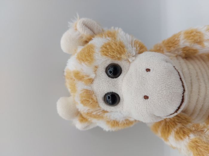 Peluche doudou girafe AUCHAN écru beige marron velours côtelé yeux durs (abîmés) Très bon état de la peluche mais frottements aux yeux abimés par le lavage (photo 3) Envoi soigné et rapide Réf A11299