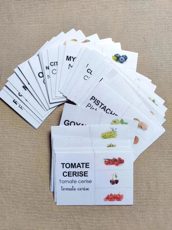 46 cartes à pince fruits avec différentes écritures Très bon état - photo numéro 1
