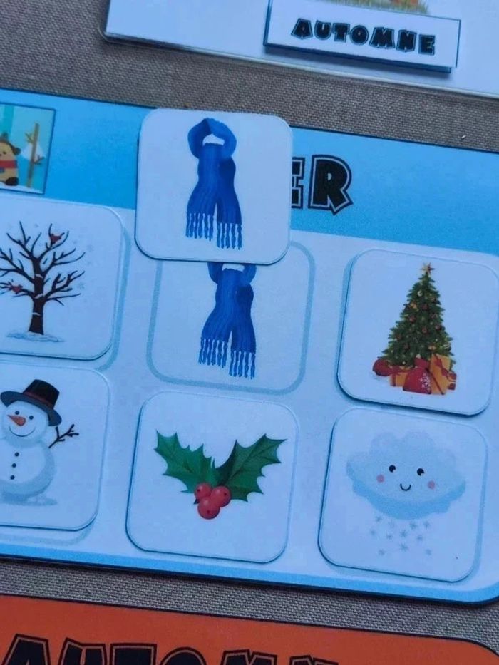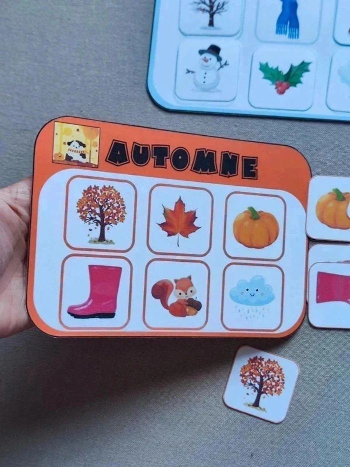 📍Jeu sur les 4 saisons 📍Papier 250G plastifié pour une bonne tenue ! 📍1 feuille A4 à scratch. 📍4 cartes 19 x 13 cm et ses 24 cartes à replacer. ⚠️ Réduction de - 15% si vous prenez la découpe en charge. 👉Pour trouver d'autres activités c'est par ici : 🔎#elisabethdesignSaison 📫⏳ Envoi rapide et soigné le jour même de l'achat dans la mesure du possible! 🤝 Frais de port ajusté au plus bas. Ref : 1#/2#-Saisons