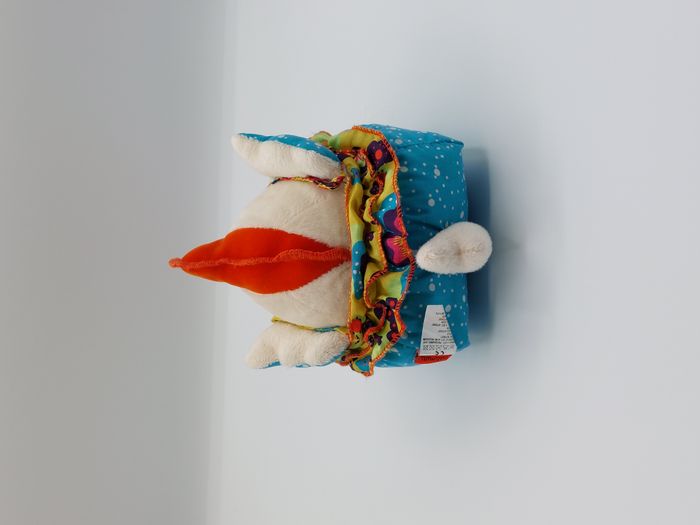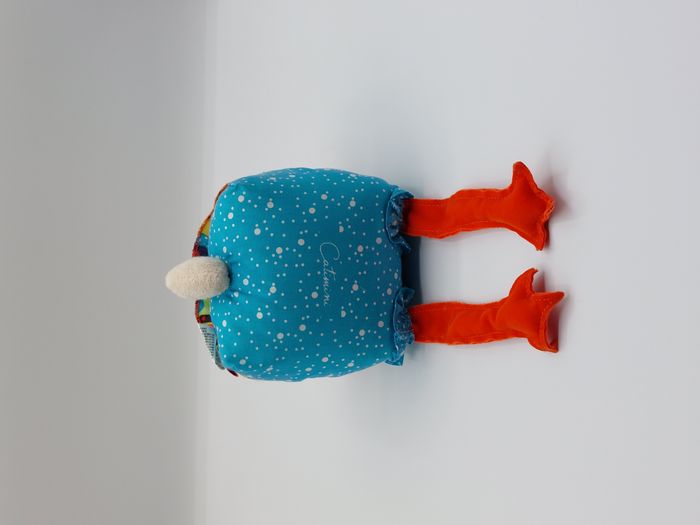 Peluche doudou poule coq CATIMINI écru orange bleu pois blanc 16 cm assis, billes dans les pattes Très bon état, n'a pas servi de doudou, juste lavé pour la vente, le tissu laisse apparaître quelques fils la crête et les pattes ont bien une couleur orange (moins vif que sur la photo) Envoi soigné et rapide Réf A11306