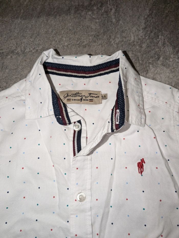 Chemise à manches longues blanche à pois multicolores Chic et habillée À peine portée comme neuve #tiffanyostertag_garçon5ans