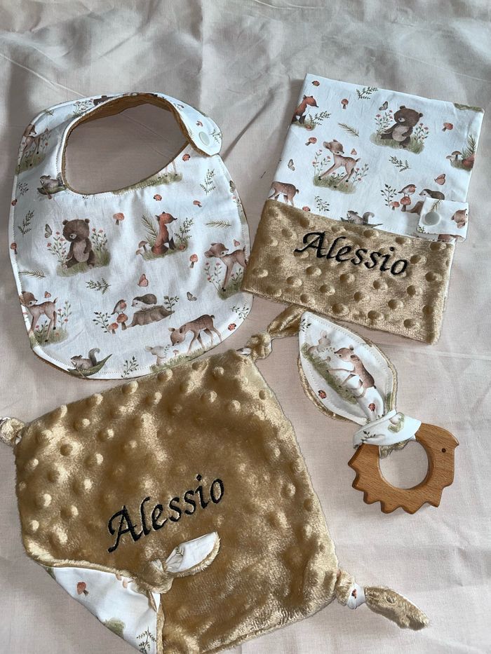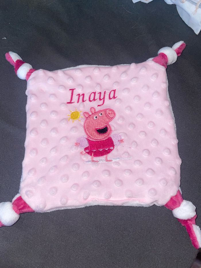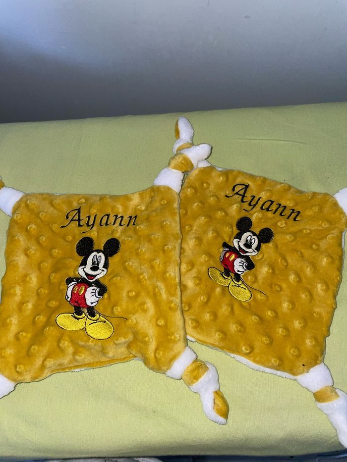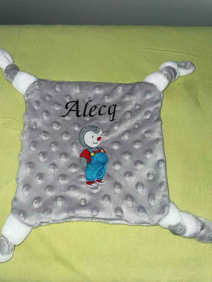 Petit doudou carré fait main Tissu tout doux avec dessin brodé Avec ou sans prénom Couleur dessin au choix le demander
