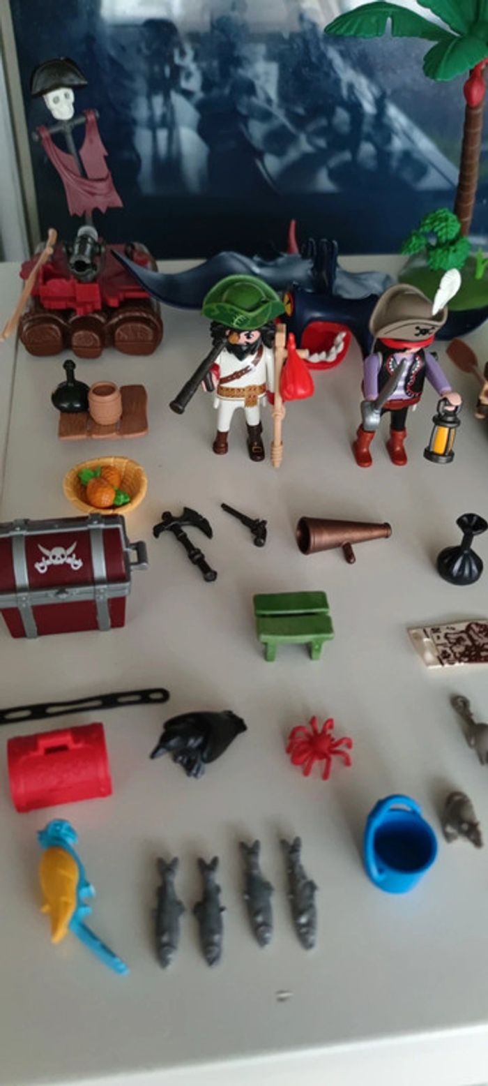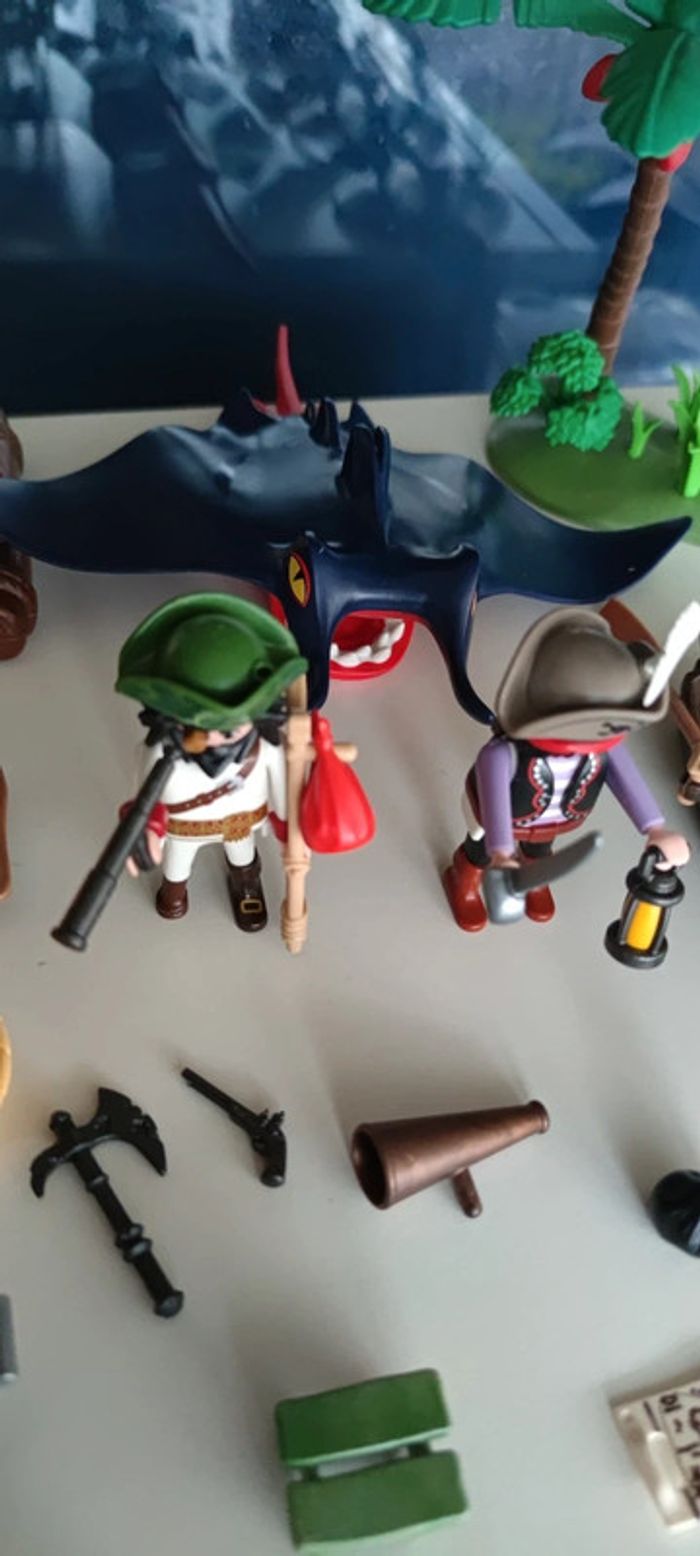 Playmobil lot pirates raie radeau palmier gros canon