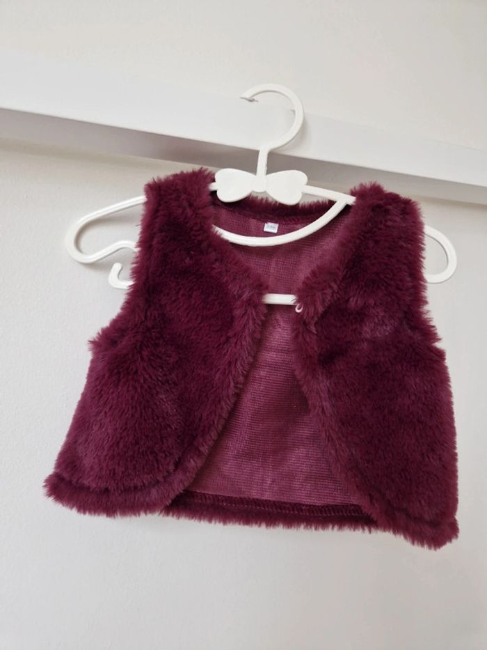 Gilet sans manches velours violet 3-6mois Très bon état - photo numéro 2