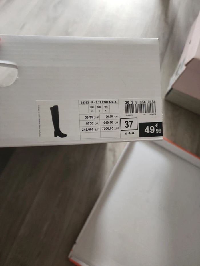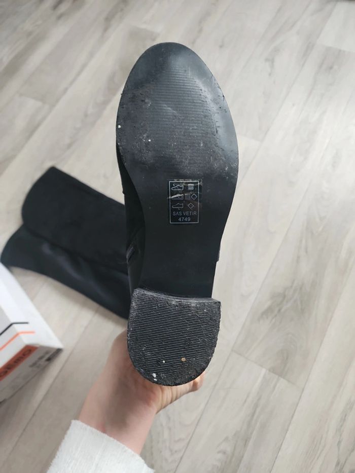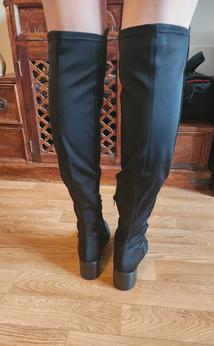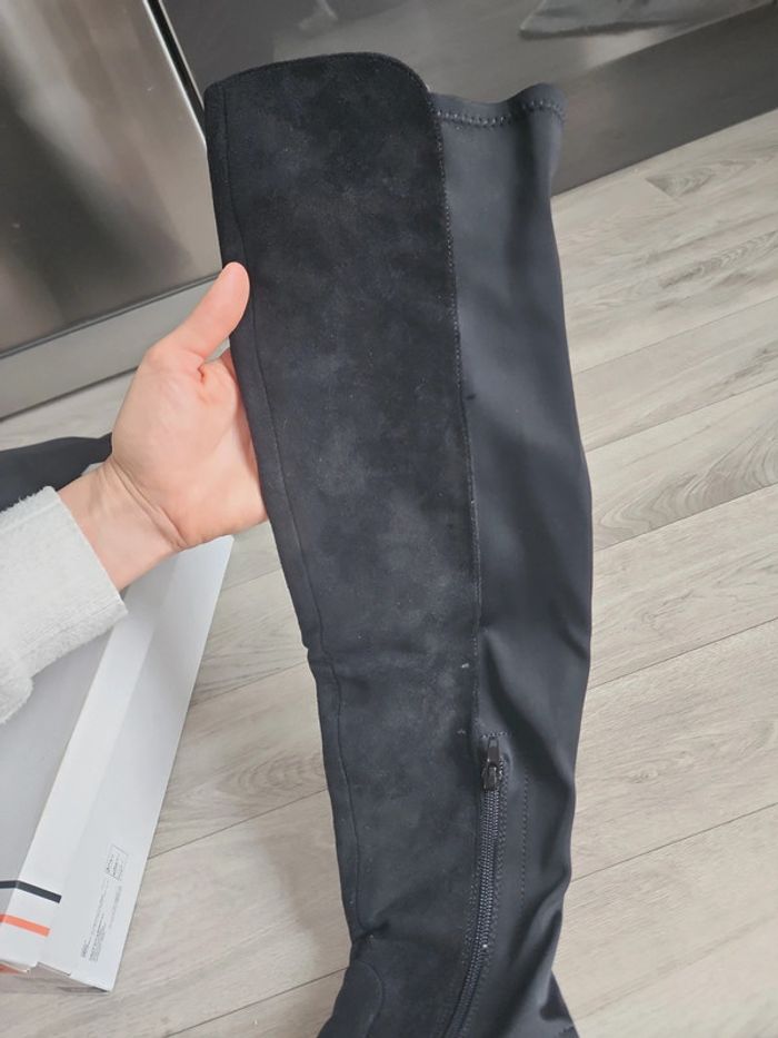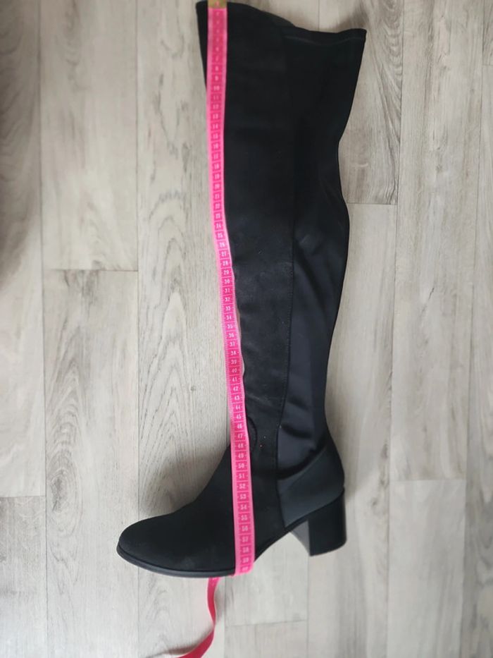 Portées 1 fois comme neuve Noires bi matiere aspect daim sur le dessus et tissu satiné à l'arrière Talon 6cm cf photo Hauteur botte cf photo Diamètre genoux cf photo Dautres articles ici #nadou8763_chauss