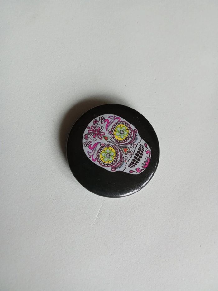 Pins tete de mort decoree pour día de muertos #pins #badge #tetedemort #tetedemortmexicaine #mexico #skull #diademuertos #fetedesmorts #calavera #vintage #oldies #accessories #sac #bolsa #manteau #trousse #teen #tattoo #punk #ado #dafnezado #dafnezaccessoire #dafnezdivers #dafnezbijou