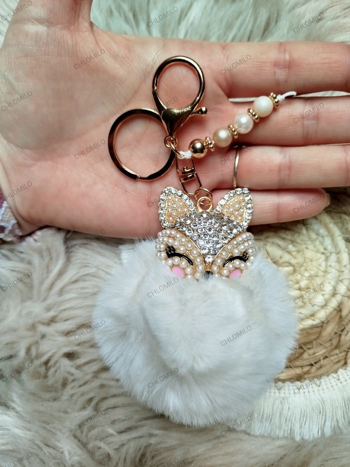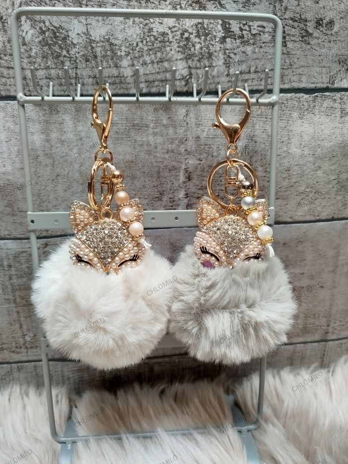 Porte clé pompon renard Deux couleurs au choix : écru ou gris Possibilité de mettre un prénom sur la ligne de perles N'hésitez pas à me contacter pour tout renseignement 💌