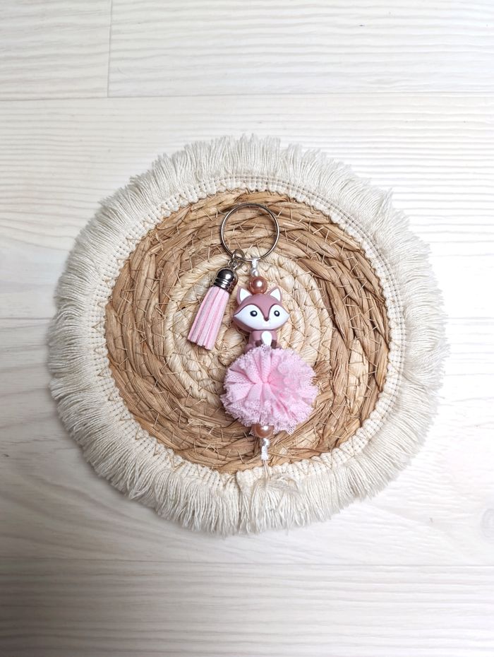 Porte clé renard rose Possibilité de modifier la couleur du pompon et de la pampille