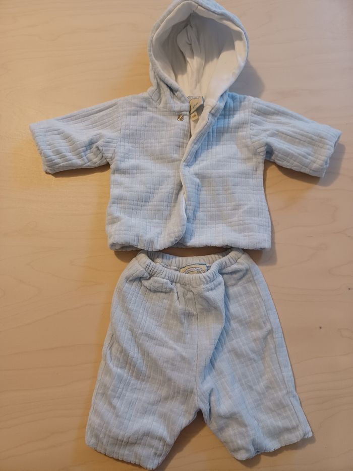 Ensembles bleu clair en velours. Il manque 1 pression sur le gilet
