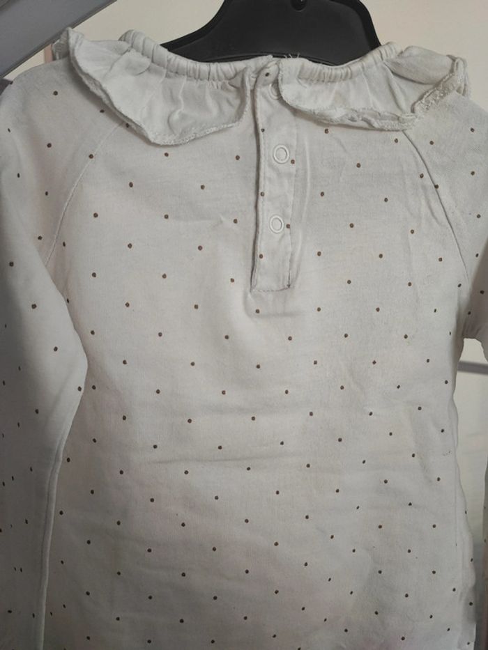 T-shirt manches longues blanc a pois taille 24 mois - photo numéro 5