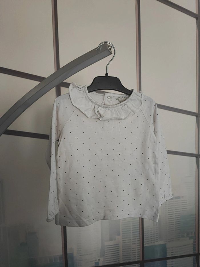T-shirt manches longues/ pull blanc a pois taille 24 mois En très bon état Kiab