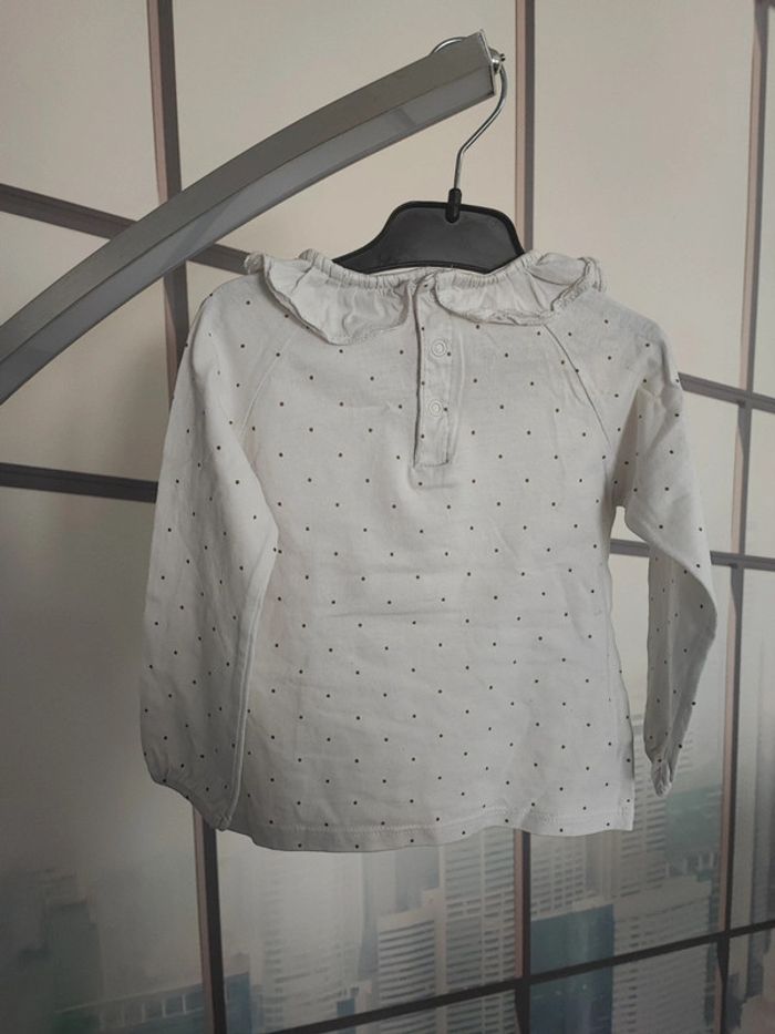 T-shirt manches longues blanc a pois taille 24 mois - photo numéro 3
