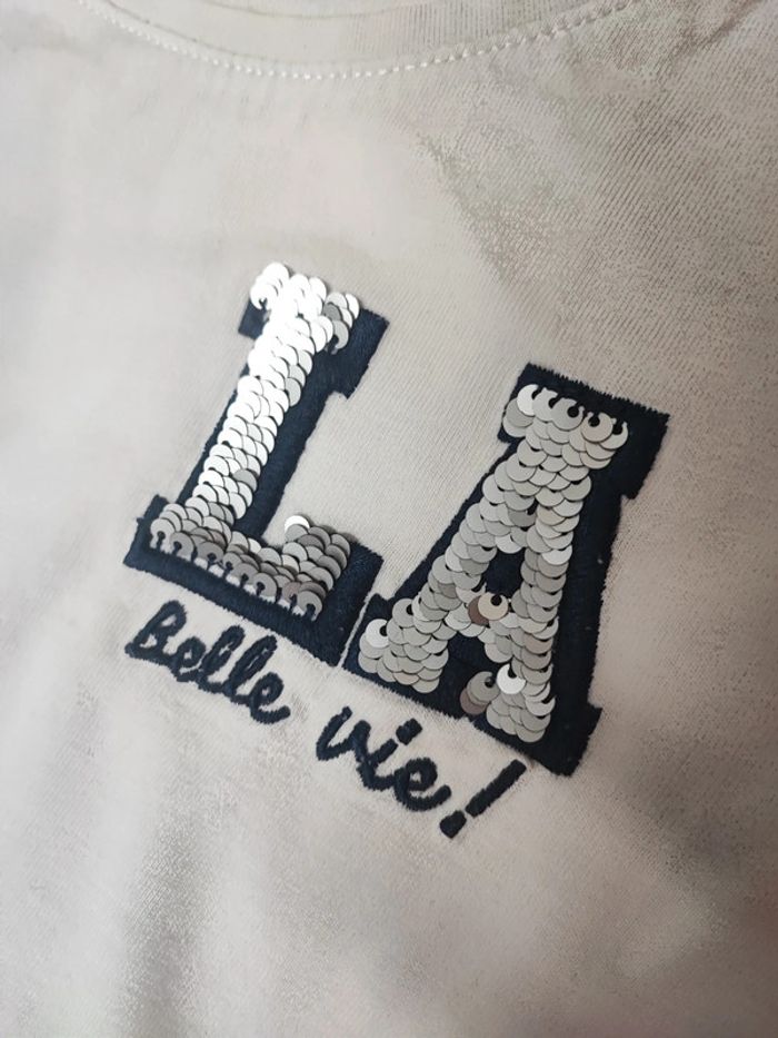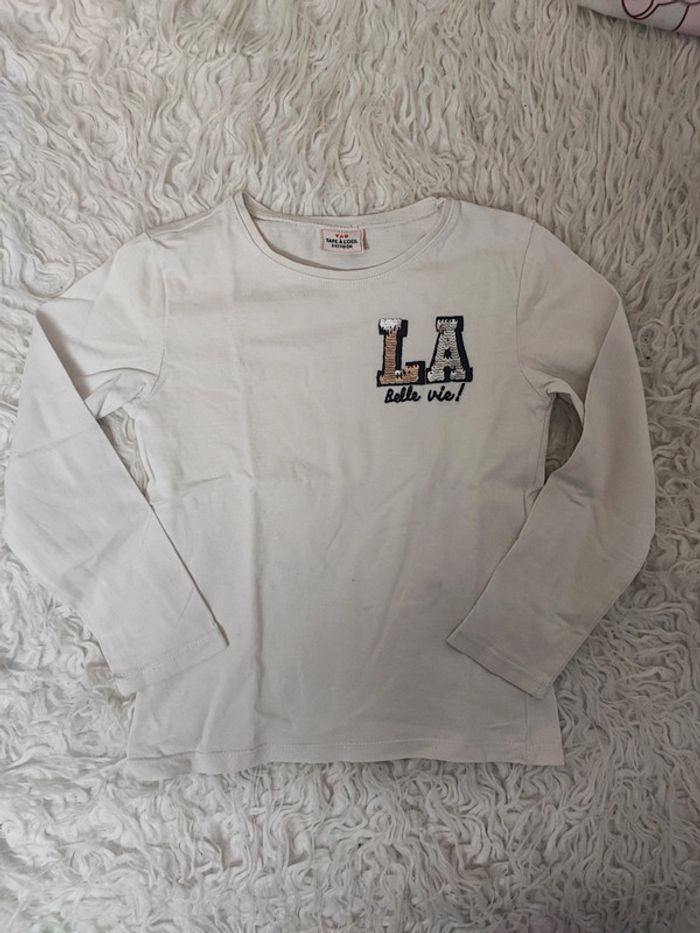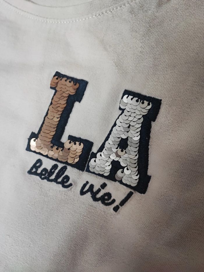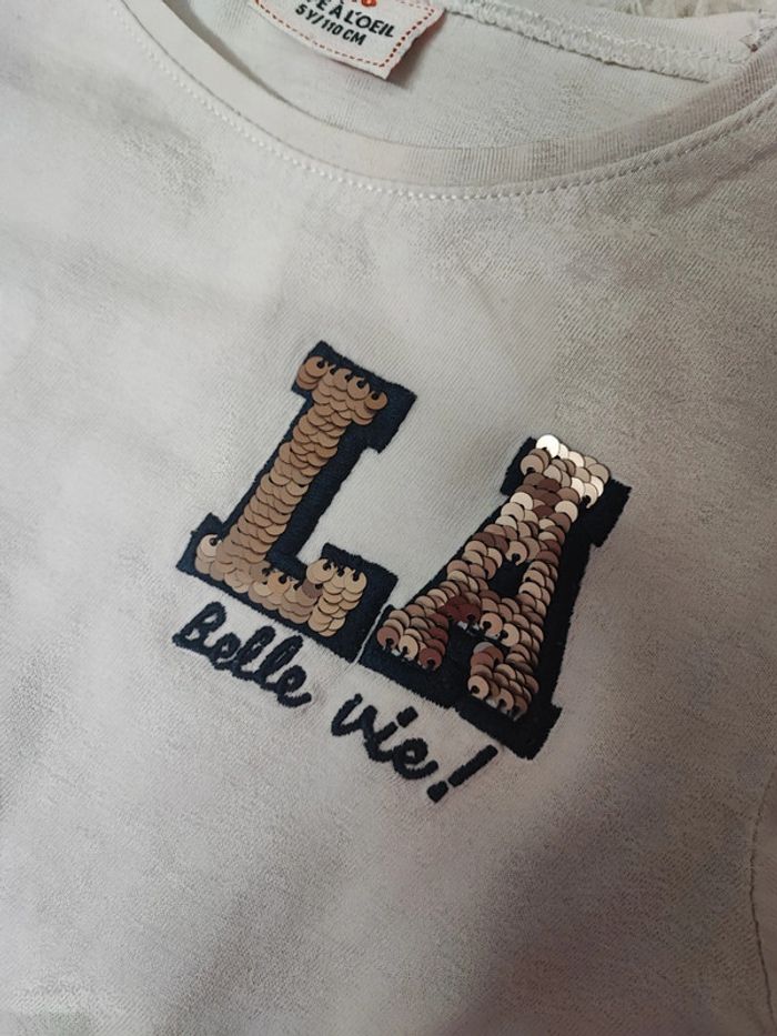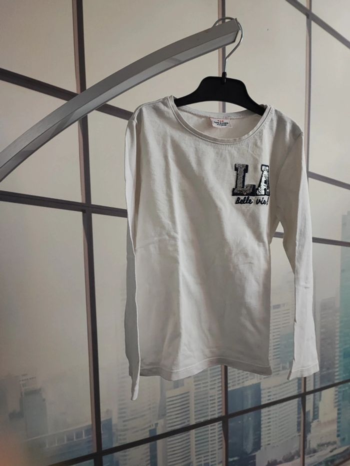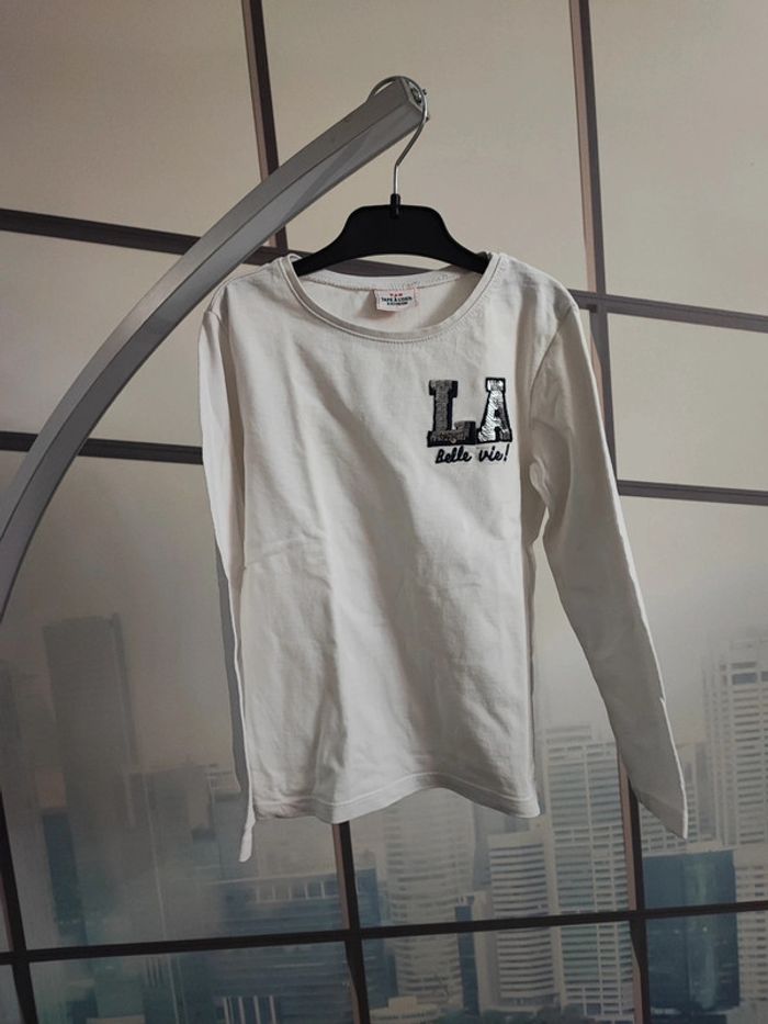 T-shirt manches longues taille 5 ans Blanc Inscription La belle vie Très bon état