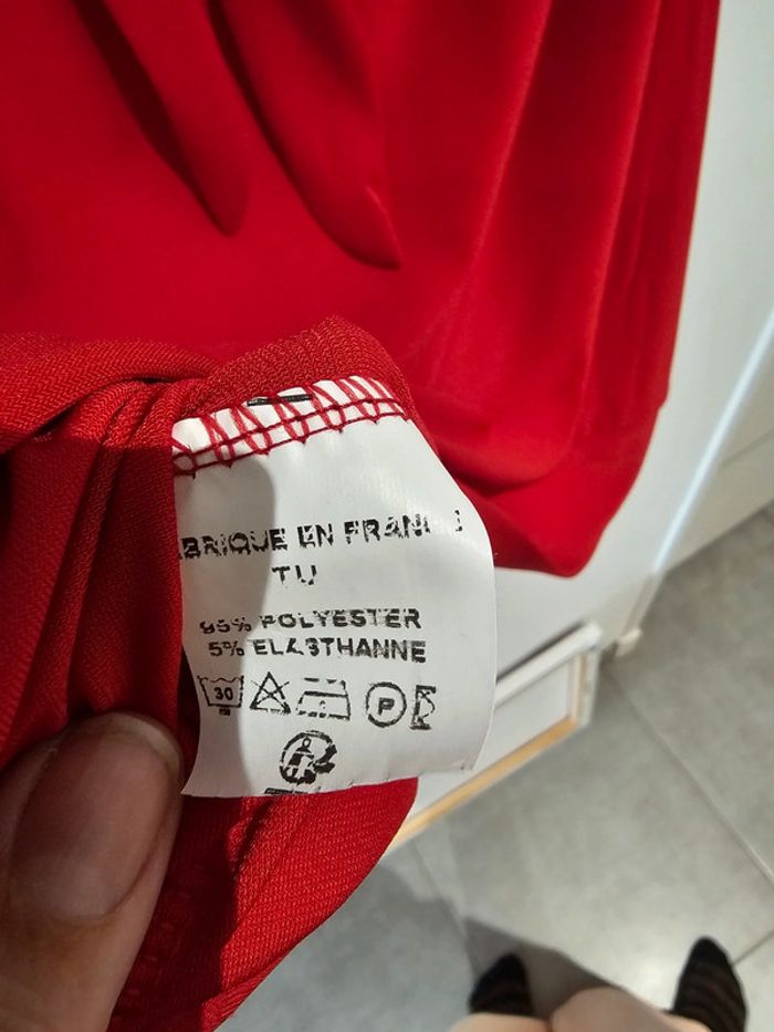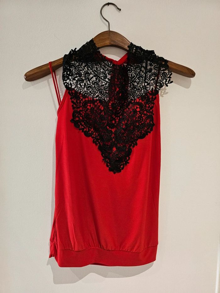 Dos nu rouge avec dentelle noire taille unique En très bon état Se noue dans le dos