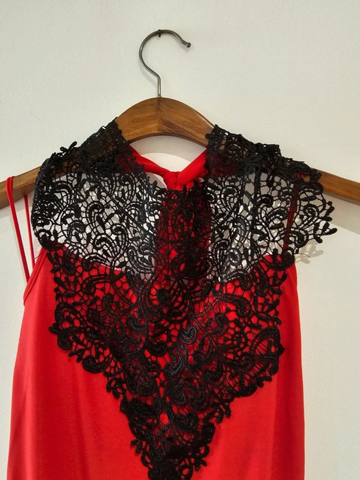 Dos nu rouge avec dentelle noire taille unique - photo numéro 5