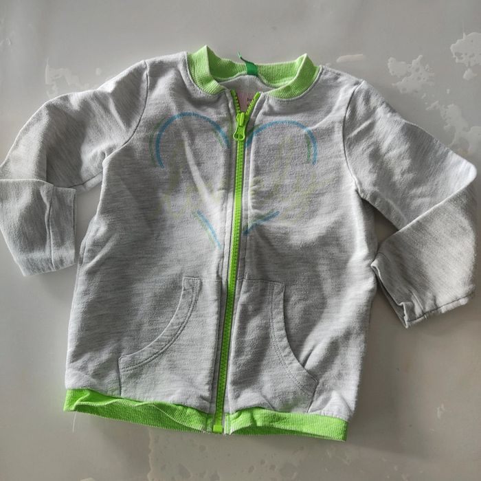 Gilet zippé taille 2 ans. Étiquette prénom thermocollée dedans. Des tâches très discrètes sur l'épaule gauche. #ksandra57_fille24mois