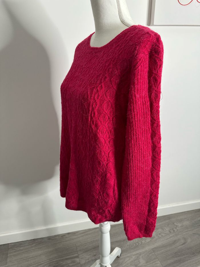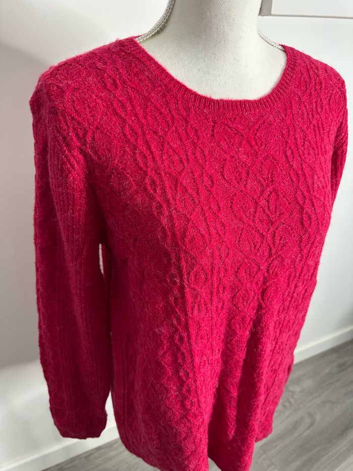 Pull en alpaga mailles torsades rose framboise Damart T42/44 XL/XXL - photo numéro 3