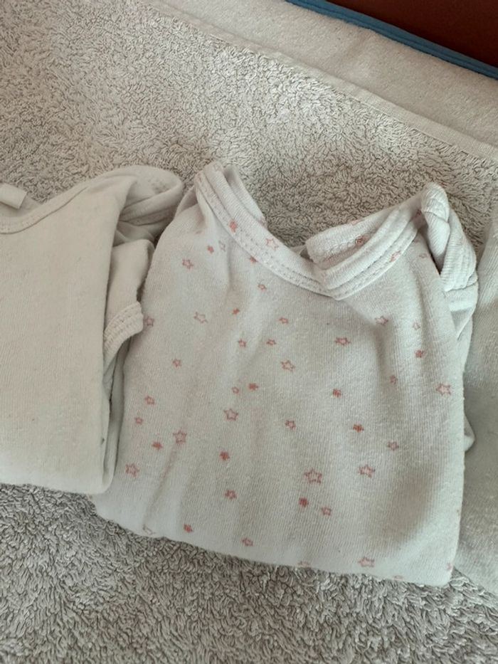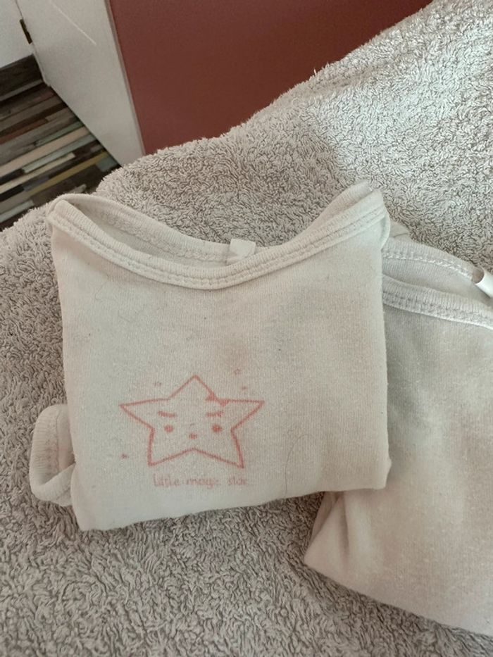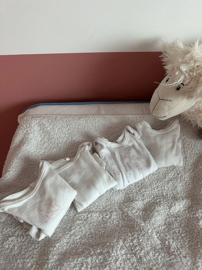 Lot 7 bodies 74cm 12 mois manches longues Portés mais sans défauts particuliers, en bon état Confortables