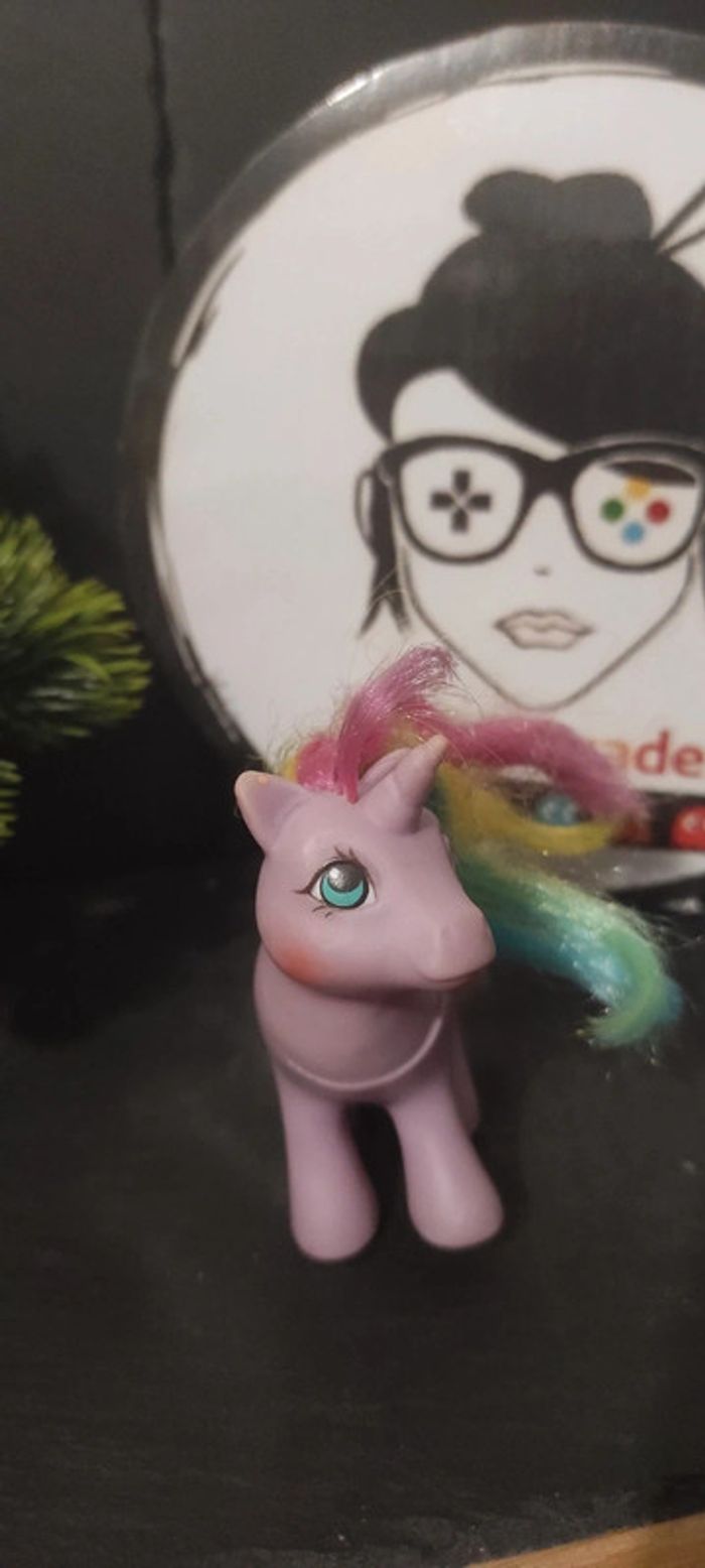 Crin potentiellement écourtés . Crins rêche soin et démêlage à faire Prénom écrit au marqueur sous le ventre ( imprégné) Marque Hasbro  Complément description:  L'objet est exactement comme sur les photos, vous achetez ce que vous voyez les photos font entièrement partie de la description.  Les crins sont de la longueur que vous voyez il peuvent potentiellement être écourtés  Petit nettoyage à prévoir  Pour plus d'informations vous pouvez me contacter directement je vous répondrais avec plaisir  Transport :  Les frais de port comprennent les frais du transporteur, le carton et le calage nécessaire à la bonne réception de votre colis.  Envoi sous format de colis  Envoi avec numéro de suivis systématique Achat multiple:  Plusieurs poneys peuvent être mis dans un même carton ( poids finit du colis 500g), contactez moi avant d'acheter afin de grouper les frais de port .  Maximum de 2KG cartons fini, cumul de frais de port. Prix à voir ensemble  Référencement :   My little pony g1 Mon petit poney g1 Jouet ancien / vintage / collection / occasion #geektradeponeyg1 #mylittlepony #monpetitponey #poney #hasbro #vintage #ancien #collection #collectionneur #cheval #poneyg1 #ponyg1 #jouetancien #mlp #jouetfille #fille #enfant #jouet #poupée #poneyàcoiffer  Mein kleines pony Mi pequeno p