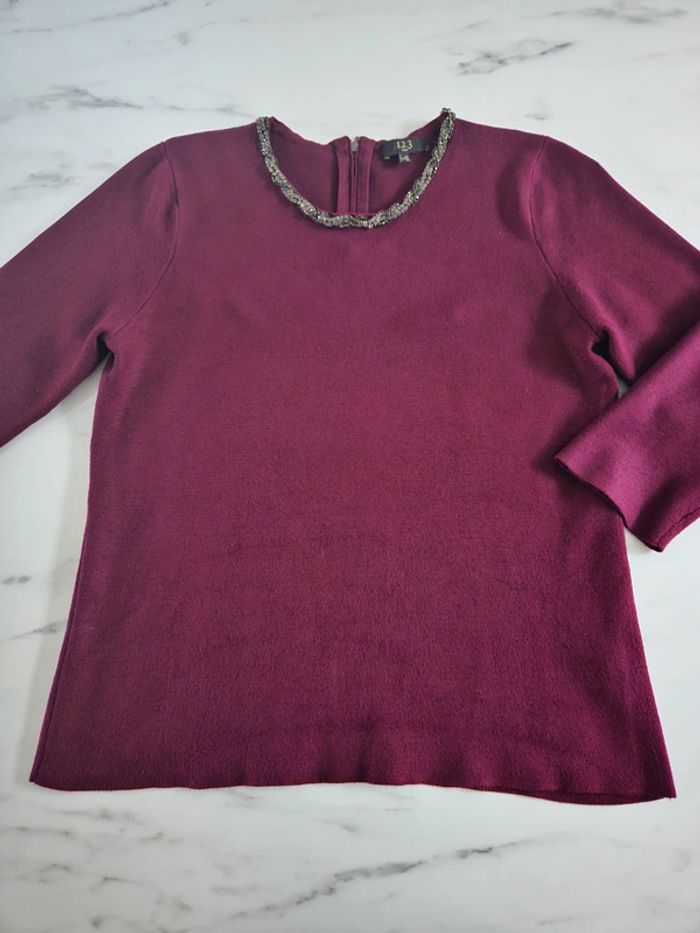 1.2.3 Paris pull bordeaux manches 3/4 taille 44 - photo numéro 1